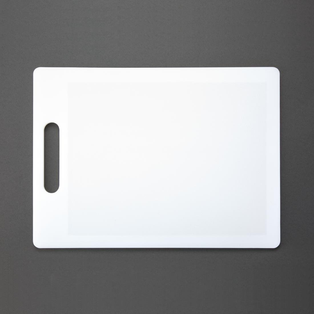 Reduce the risk of cross-contamination with this white chopping board from Nisbets Essentials. The white color indicates the board is to be used for bakery and dairy ingredients only, increasing hygiene and customer safety, especially when allergens are involved.