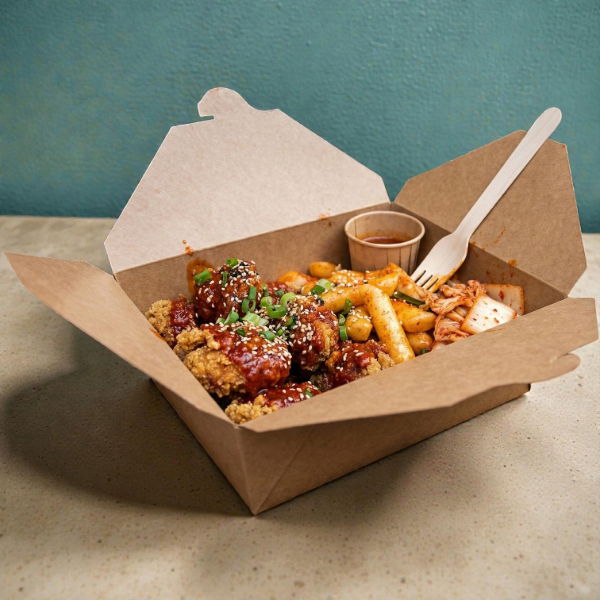 The No.4 Kraft Biobox containers are large food containers with a capacity of 96oz, offering ample space for family-sized meals or catering events. Each pack contains 4 bundles, with 40 containers in each bundle, providing a total of 160 containers. The No.4 Kraft Biobox containers (96oz) provide a robust and eco-friendly option for large-scale food storage and service. Made from high-quality, recyclable kraft paper, these containers are perfect for holding substantial portions of hot or cold dishes. Their spacious 96oz capacity makes them ideal for catering, bulk takeout, and food service operations. Sysco large dinner, salad tray, Asian food, pasta, noodles, Thai food, Korean food, Vietnamese, Chinese food, sushi, brownies, cookies, sweets, muffins, fairy cakes, buns, scones, pavlova, apple tart, apple pie, cake slices