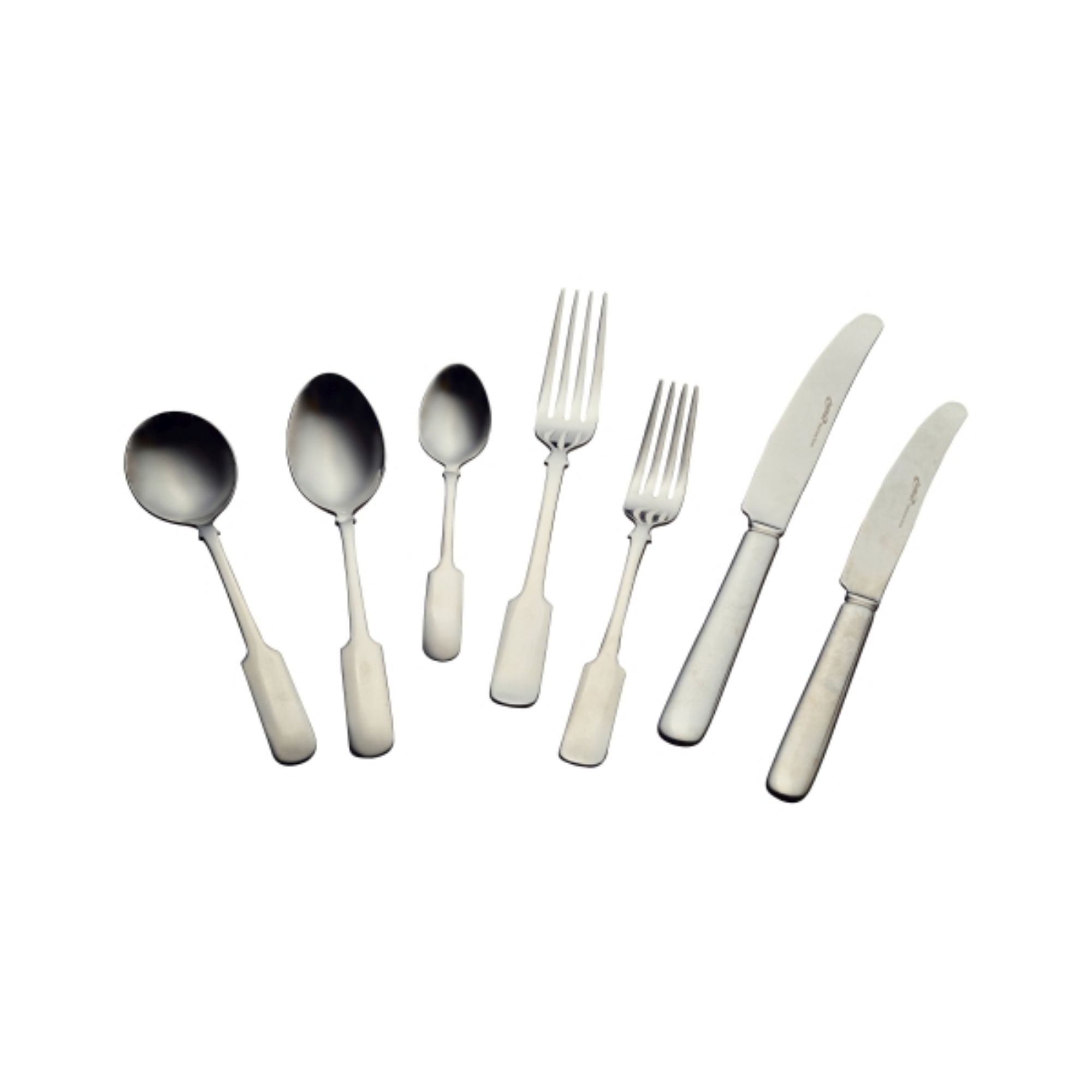The set comprises a table knife, table fork, dessert knife, dessert fork, dessert spoon, soup spoon, and teaspoon, ensuring you have the perfect piece of cutlery for every course. Choose the Old English 7pc Sample Cutlery Set from Caterboss and enhance your food business's dining experience.