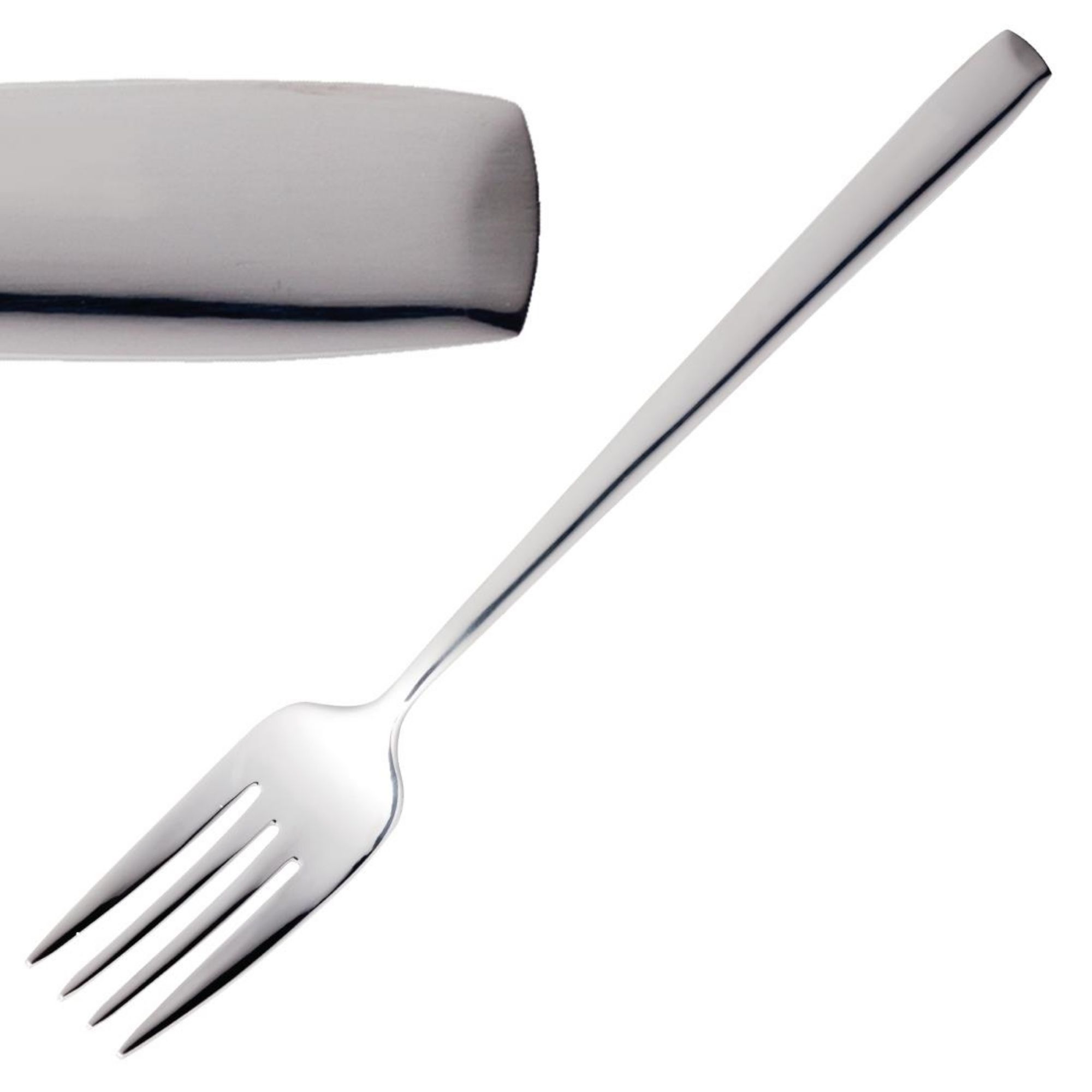 Stylish, contemporary range of 18/10 stainless steel cutlery in a distinctive slimline design featuring thin, refined handles with a high polish finish. Durable and dishwasher safe. Sold in dozens.