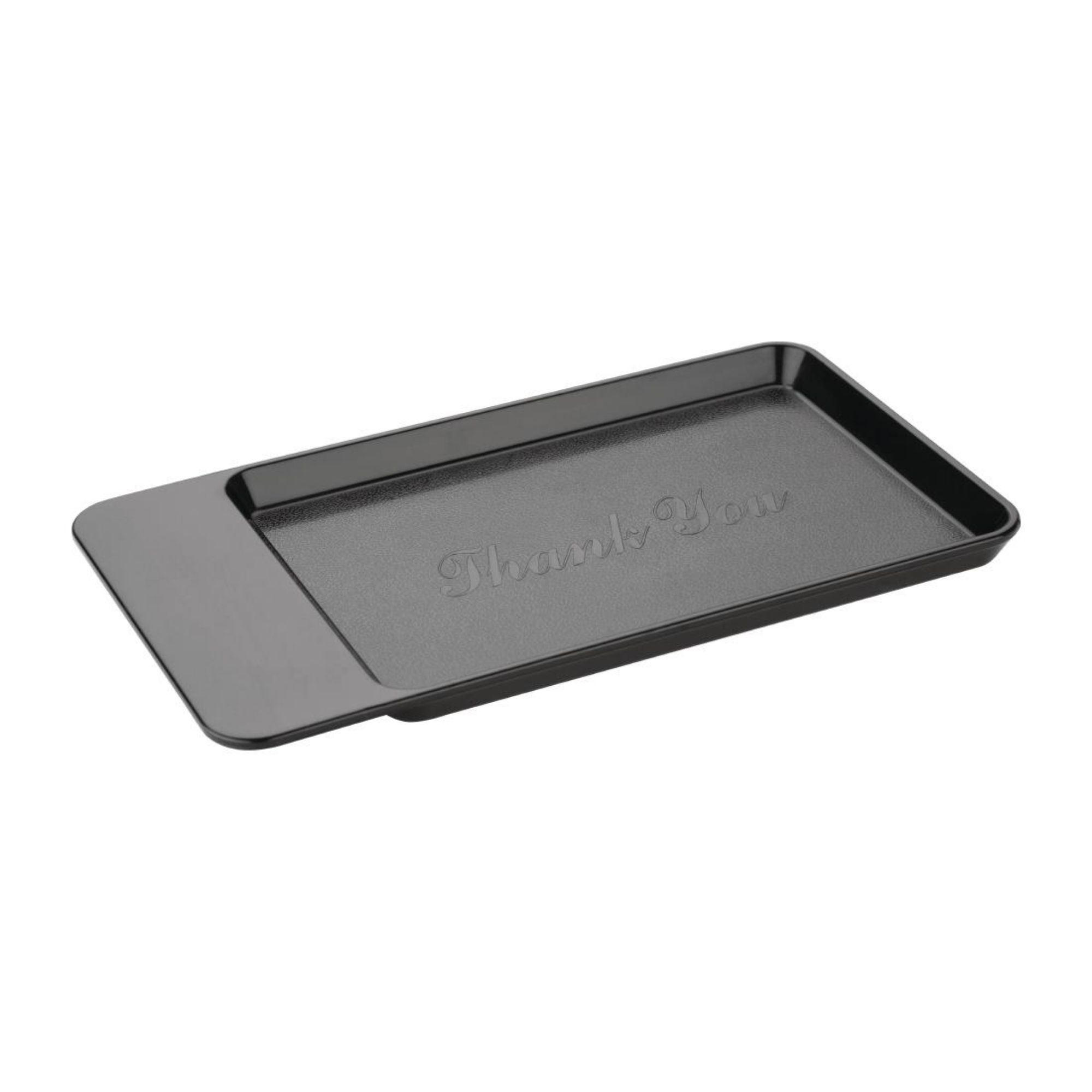 This product is a black ABS plastic tray featuring a 'Thank You' engraving. The tray is designed with durability in mind, utilizing high-quality ABS plastic that ensures longevity and resistance to wear and tear. The elegant engraving adds a touch of sophistication, making it suitable for various settings, whether for personal use or as a thoughtful gift. Its sleek design and practical functionality make it an ideal choice for serving or organizing items efficiently.