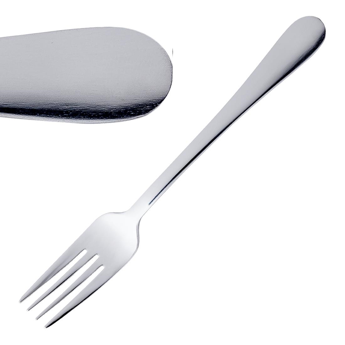 The product is made from highly polished 18/0 stainless steel, featuring smooth rounded edges on the base of the handle. It is sold in dozens.