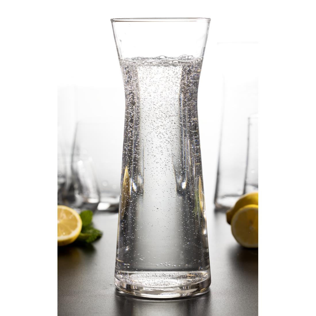Olympia's 1Ltr conical carafe can be used as a table serve for either water or wine, or for storing and keeping liquid cold in the fridge. The carafe features a weighted base for added stability and rolled edges to improve durability and prevent chipping. Plus, it is also dishwasher safe for easy and convenient cleaning.