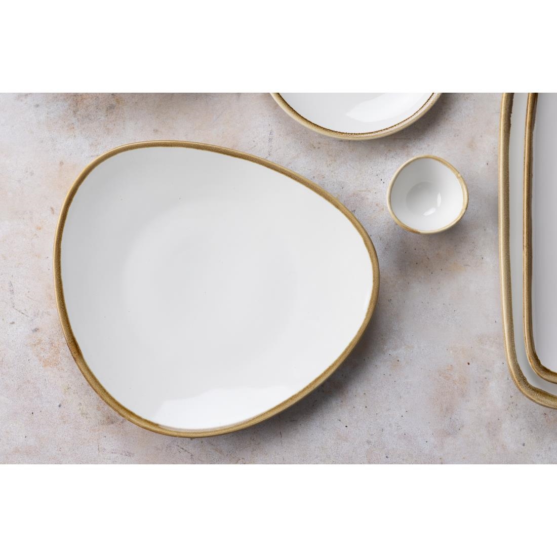 White crockery with a rustic edge. Perfect for farm to fork dining.