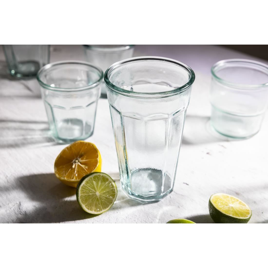 Add an old-style touch to your bar and restaurant services with these 500ml tumblers from Olympia's New Orleans collection. Thanks to their panelled design, the tumblers benefit from a retro look that allows you to serve water, soft drinks, or cocktails in style. Safe for use in the dishwasher, these tumblers are quick and easy to clean, giving you a fast turnaround of fresh glassware.