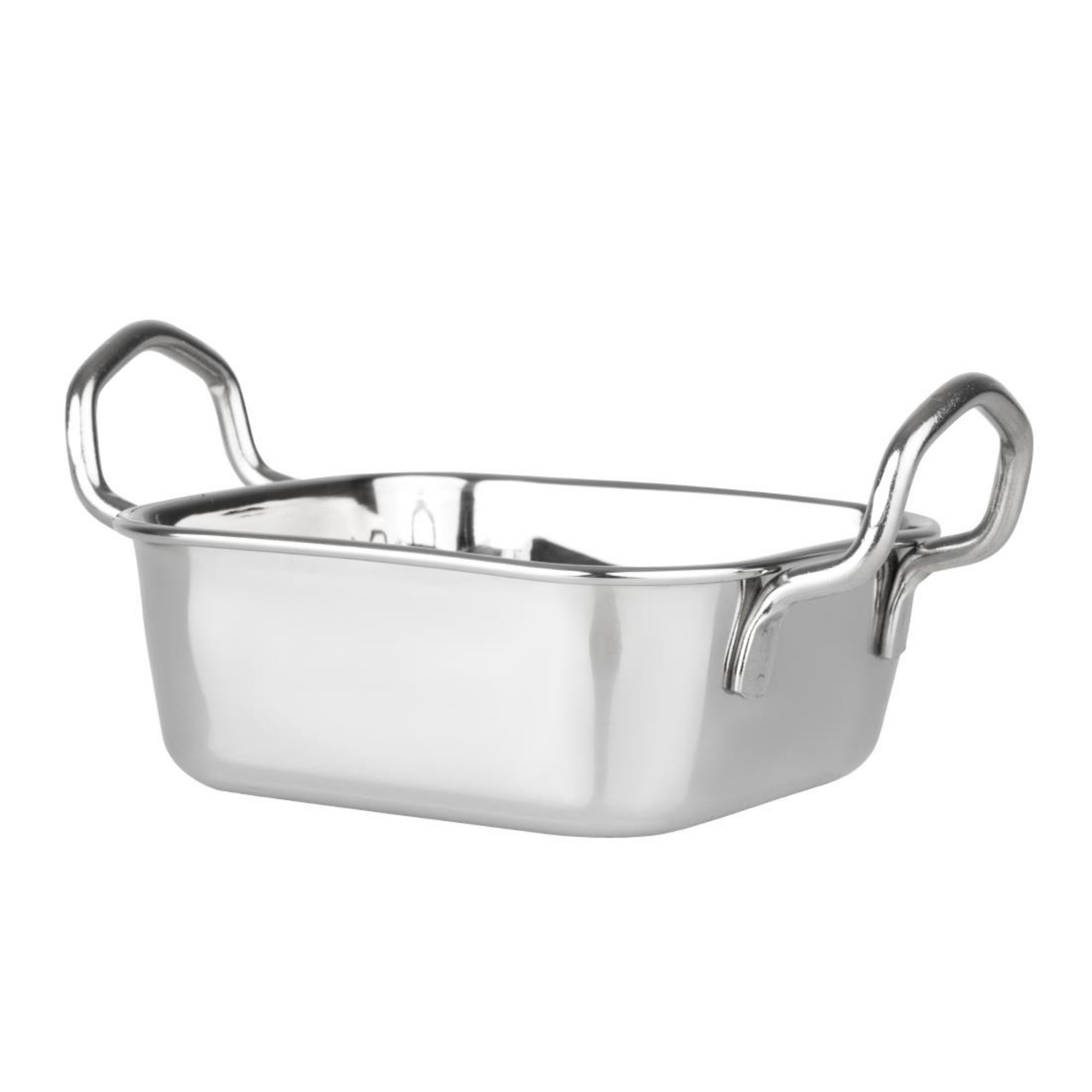 Enhance your table presentation with this stainless steel square dish from Olympia. Its lightweight design makes it easy to balance and carry, with two sturdy handles for secure transportation. Made from durable stainless steel, the dish retains heat well, keeping your food warm longer. It's built to last, standing up to regular use and is also dishwasher safe for easy care and maintenance.