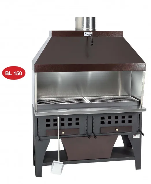 Supplied with extraction canopy (motor not included) the canopy is fitted with stainless steel back sides, and a damper system allowing greater control over the fire and interior light