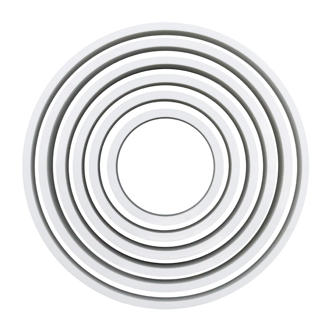 Whether its cookies, sugar paste, cakes or dough, the PME classic round shape cutters are a fantastic way to shape foods with precision. Made from durable and hard wearing ABS thermoplastic, the PME classic cutters are easy to use and clean. Sold in a pack of 6 various sizes.