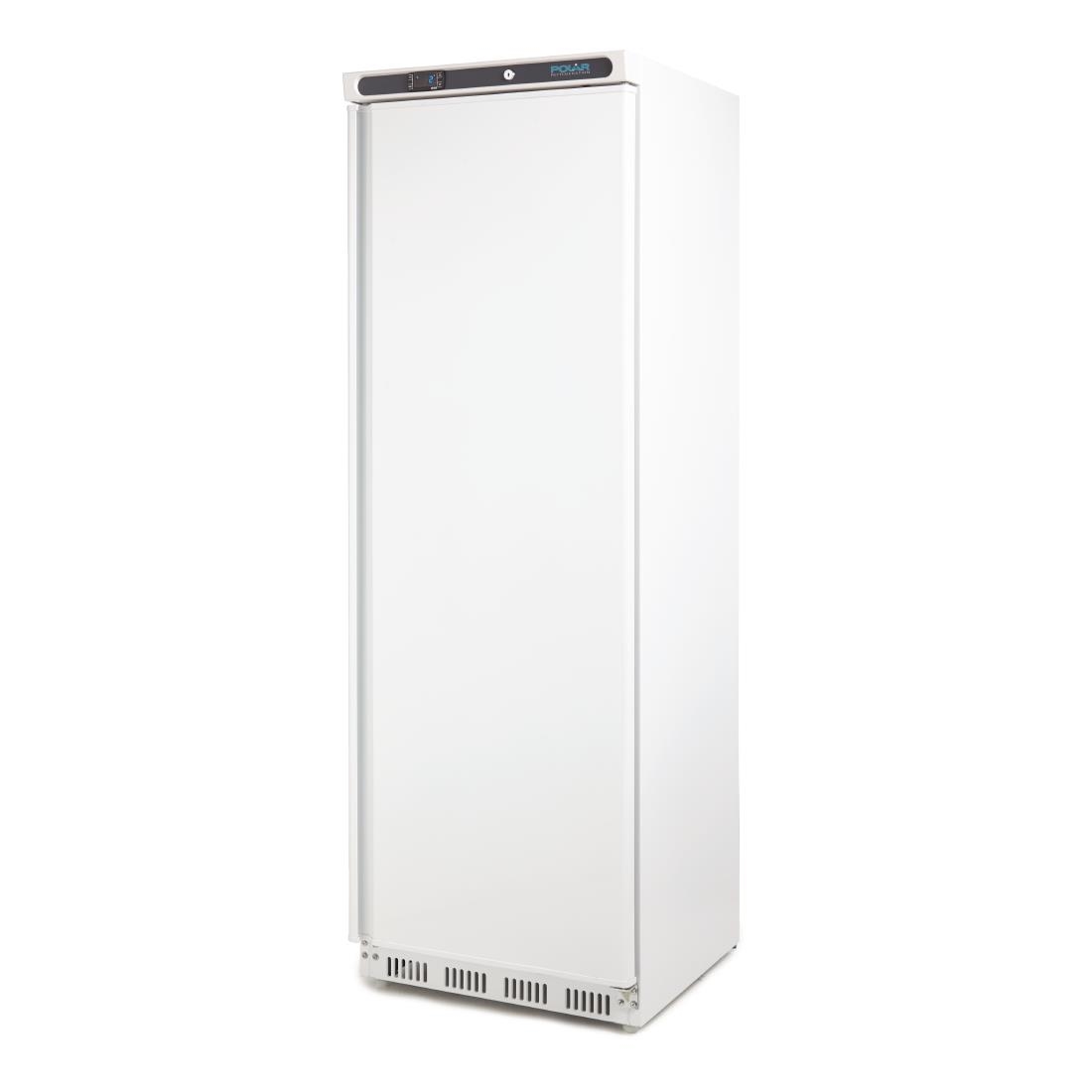 The Polar single door 400-litre commercial fridge is ideal for providing you and your kitchen with vital additional refrigerated storage in less demanding commercial environments. With its three sturdy adjustable shelves, one half shelf, user-friendly adjustable temperature display, and lockable door, the fridge is simple to use and secure. Positioning is also easy, thanks to rear fixed castors and handy adjustable front feet. Please note: maximum ambient temperature is 32°C.