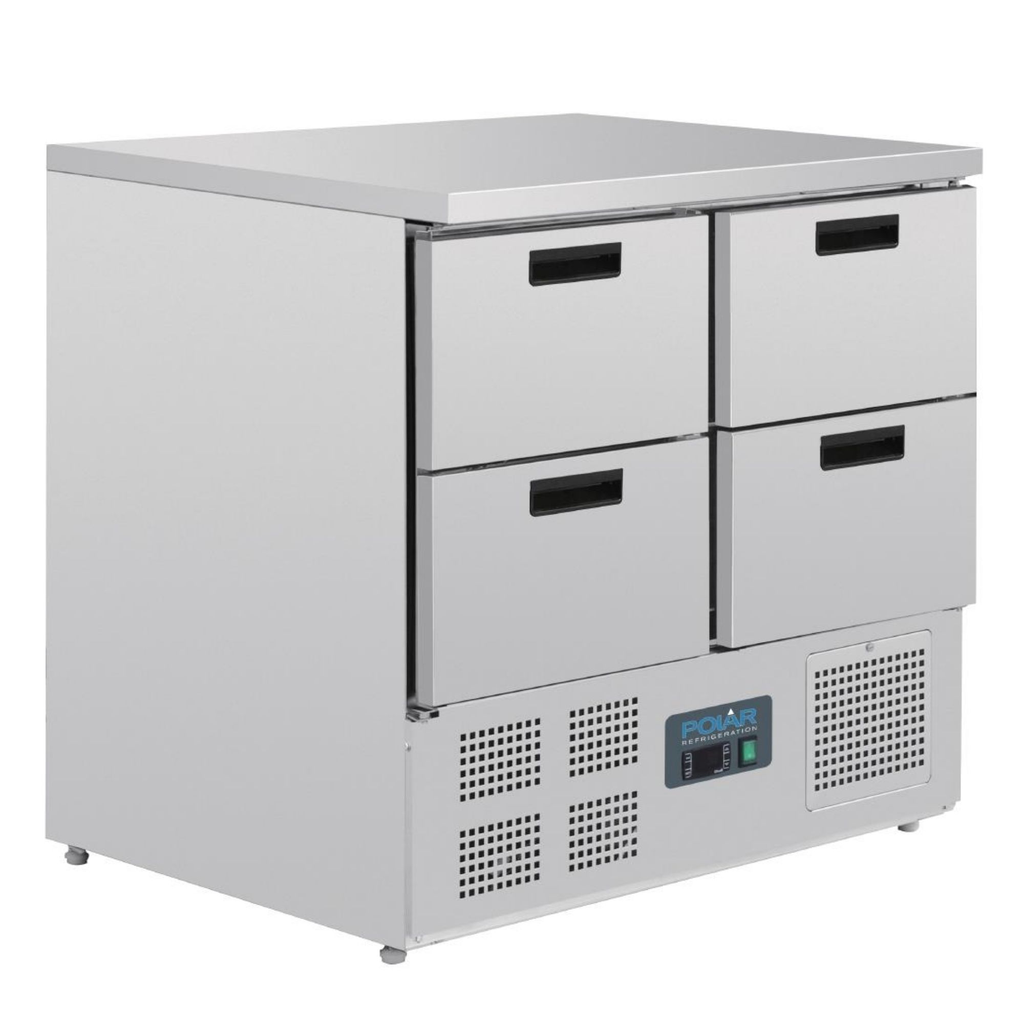 Bring flexible chilled storage to your professional kitchen with the Polar G-Series four-drawer counter fridge. By offering rapid-access storage for up to four full-size (1/1) Gastronorm pans, there's plenty of versatility to ensure you've got all the ingredients you need at hand. The digital temperature control is easy to use, while the stainless steel construction is both highly robust and simple to clean. This is a great quality commercial counter from Polar.