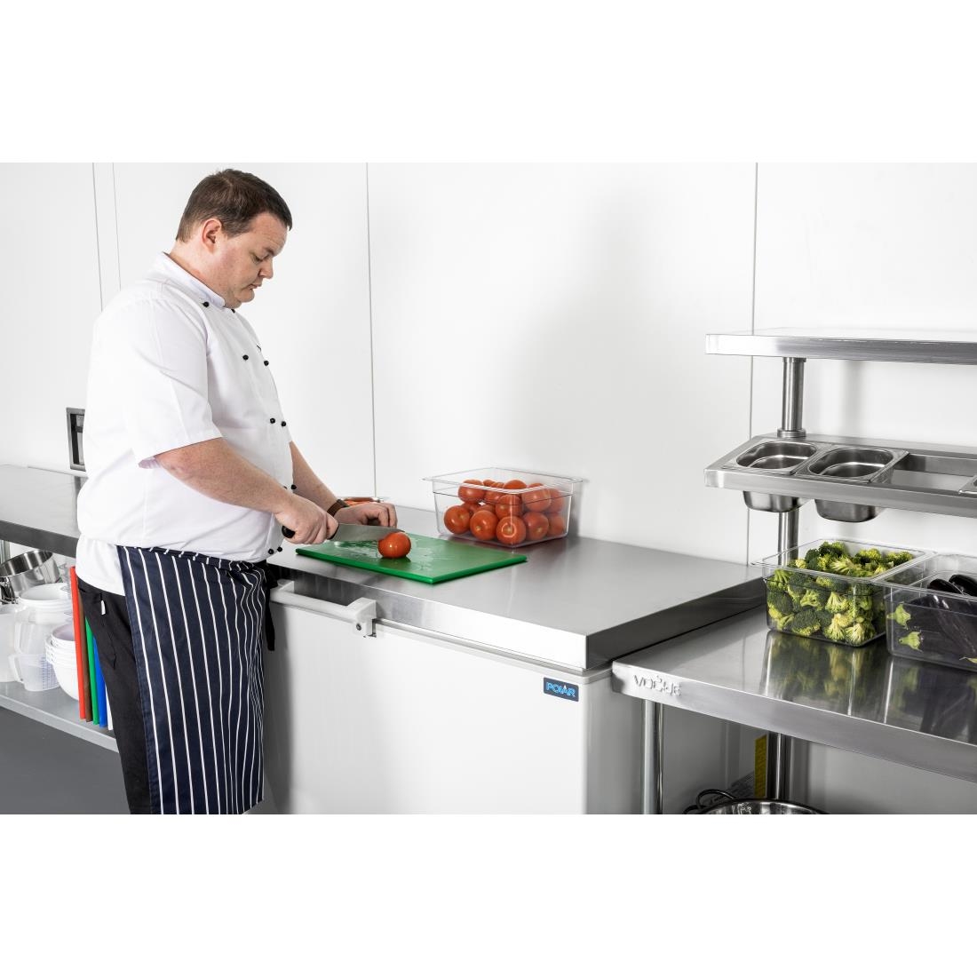 With a substantial 378 litres of frozen storage, the Polar G-Series chest freezer is ideal for restaurants, takeaways, and any other commercial kitchens requiring dependable freezer space. The freezer features a robust stainless steel lid that also serves as a sturdy work surface, optimizing your available floor space. The two removable baskets help organize and improve access to your frozen stock, making it easy for staff to locate ingredients during busy services. Thanks to the strong commercial design of the freezer, it is easy to clean and maintain, an essential time-saving feature for any professional refrigeration unit.