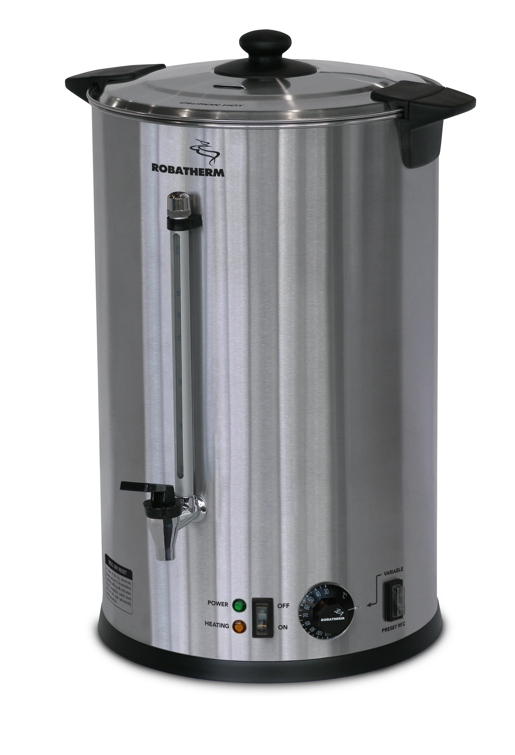 Mode selector switch for either variable (30°C-110°C) or pre-set 95°C temperature control