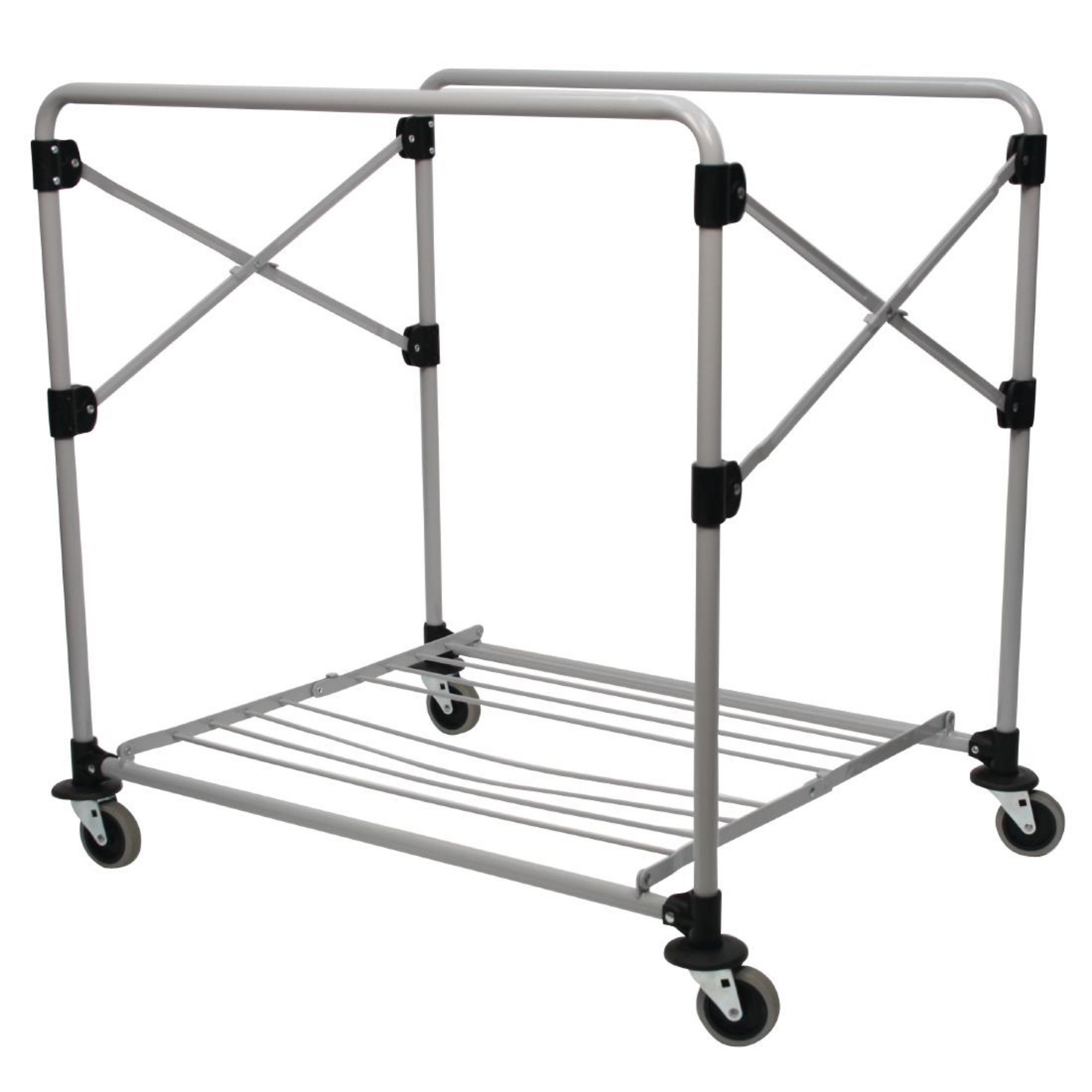 Collapsible frame enables efficient storage; cart's width reduced by 75% when collapsed