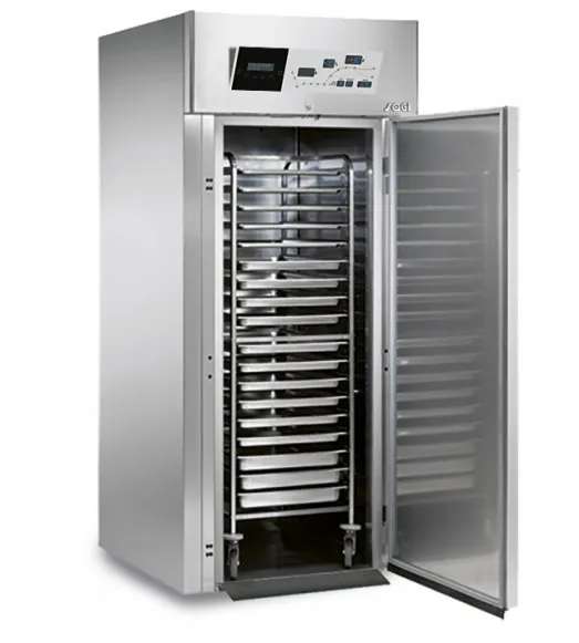 Proofing cycle using electric heaters and precise control of relative humidity with a humidity regulator; mains water supply is required