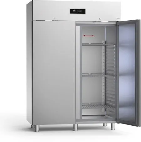 Shelf capacity of 20 x 2/1 GN shelves at 55mm centers per section.