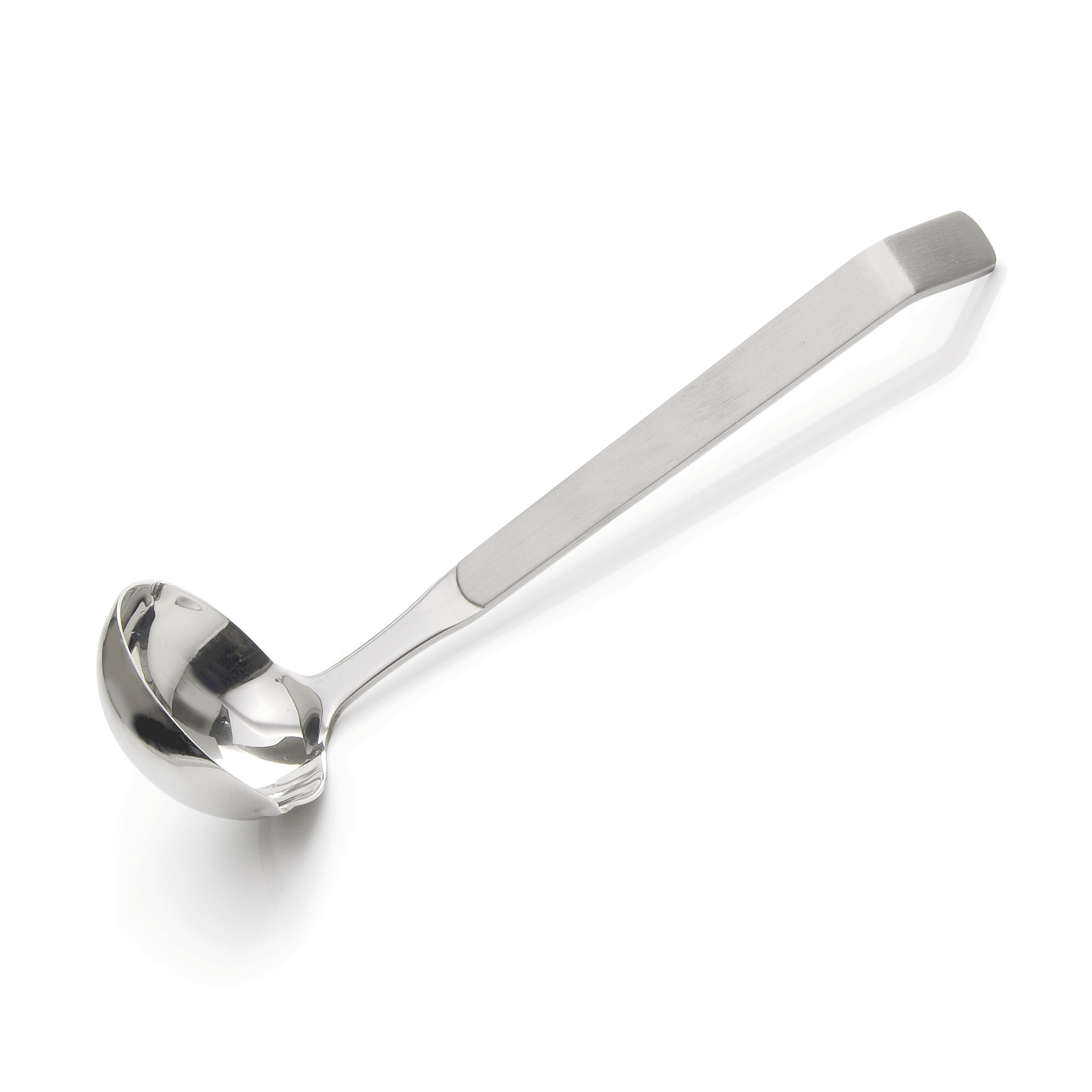 The product features handles with a satin finish, complemented by a spoon bowl that boasts a mirror finish. It is designed with two pouring spouts for added convenience.