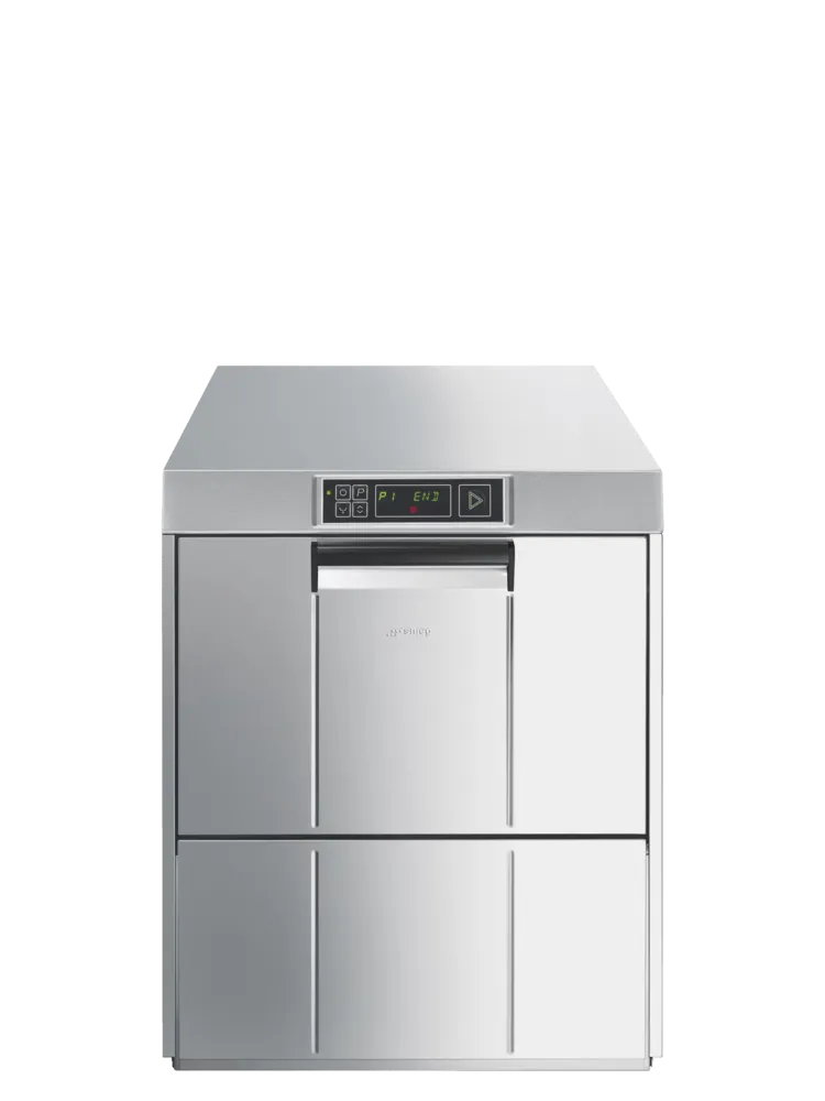 The double-walled dishwasher comes equipped with rinse, detergent, drain, and booster functions as standard. It features an end-of-the-night self-cleaning program for added convenience. This low-profile machine stands at only 820mm high and includes a 500x500 basket.