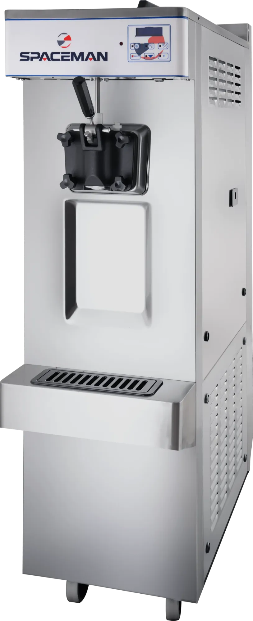 The Spaceman S68C is a high-quality, single-flavor soft serve ice cream machine designed to meet high demand with ease and efficiency. Ideal for serving ice cream, frozen yogurt, and sorbet, this freestanding unit boasts advanced features for optimal performance.