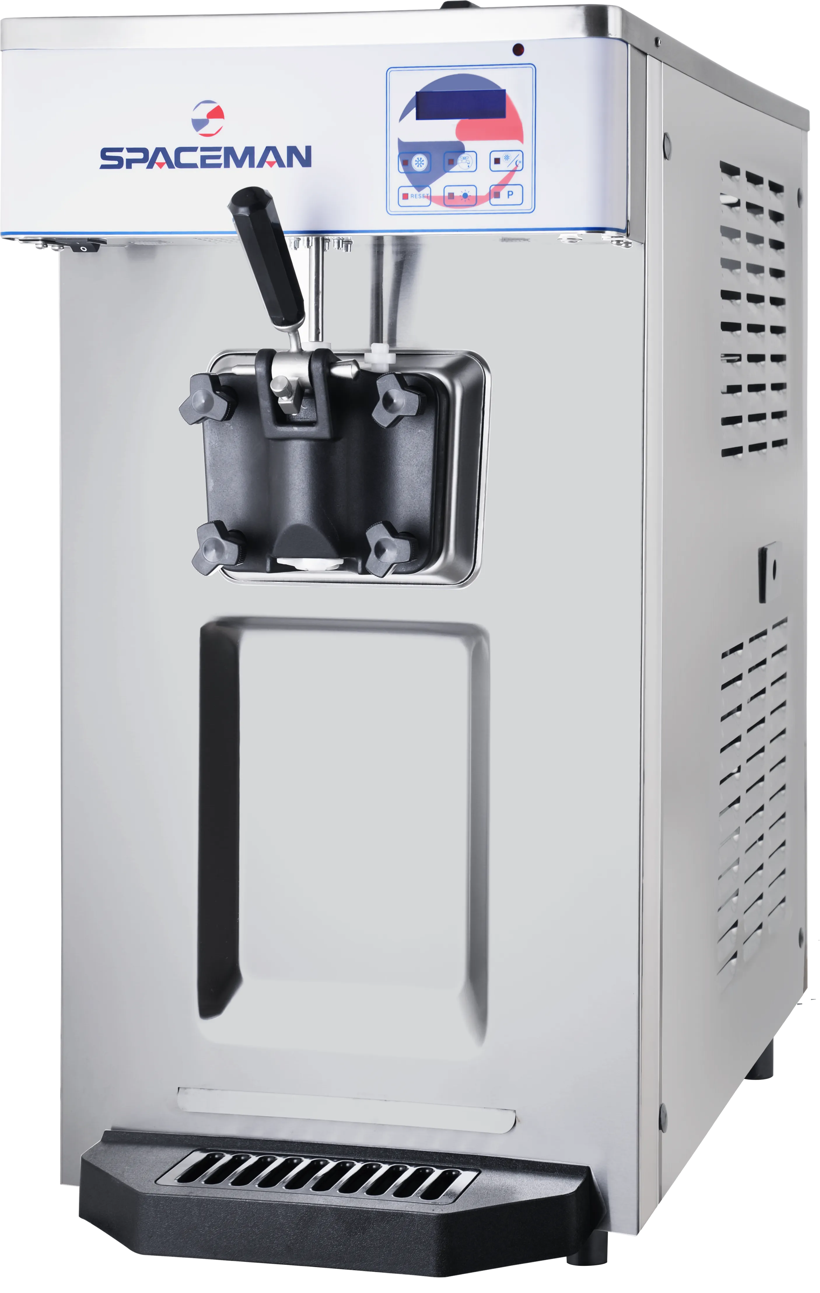 Discover the remarkable capabilities of the Spaceman T36 Soft Serve Ice Cream Machine, a gravity-fed model designed to enhance your product with up to 40% overrun, ensuring creamier and more flavorful cones compared to those produced by air pump models. Its digital interface facilitates effortless adjustments and control, making it user-friendly and highly efficient for any operator.