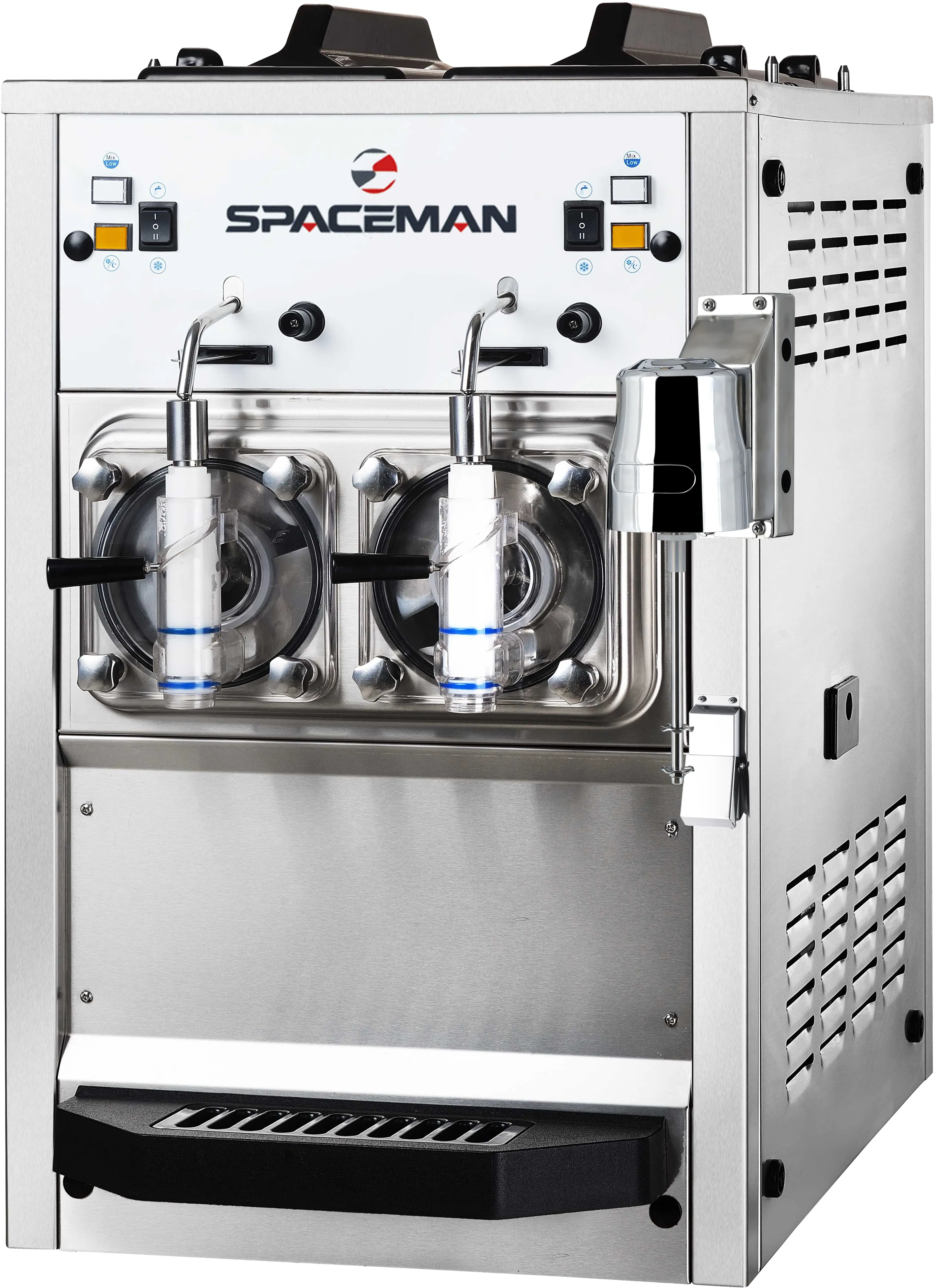 This milkshake machine from Space Man is a well-built and robust machine designed to produce the best milkshakes for years to come. We have sold hundreds of these units to satisfied customers across the country. It is an extremely high output, twin-flavour, high-quality, on-tap milkshake and frozen cocktail machine with an excellent output to suit your business requirements. The machine includes a high-quality spinner installed onto the body to create flavoured milkshakes and cocktails.