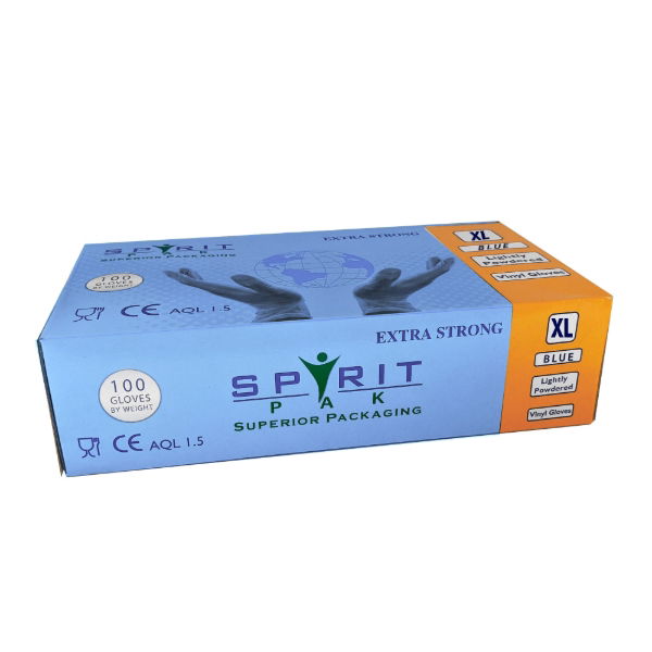 These Spirit LP blue vinyl gloves come in a pack of 10 bundles, with each bundle containing 100 gloves in extra-large size. They provide a comfortable fit and reliable protection for various applications, including food handling or general cleaning tasks. They ensure hygiene and safety in different work environments, such as commercial kitchens, healthcare facilities, or janitorial services. BWG