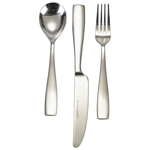 Designed to withstand the rigors of regular use, the set includes a table knife, table fork, and dessert spoon. Each of them is hand-polished and offers excellent resistance to staining and pitting, a testament to GenWare's commitment to quality. The table knife, in particular, stands out thanks to its sharp blade that's ideal for volume users, making it a practical pick for busy food businesses.