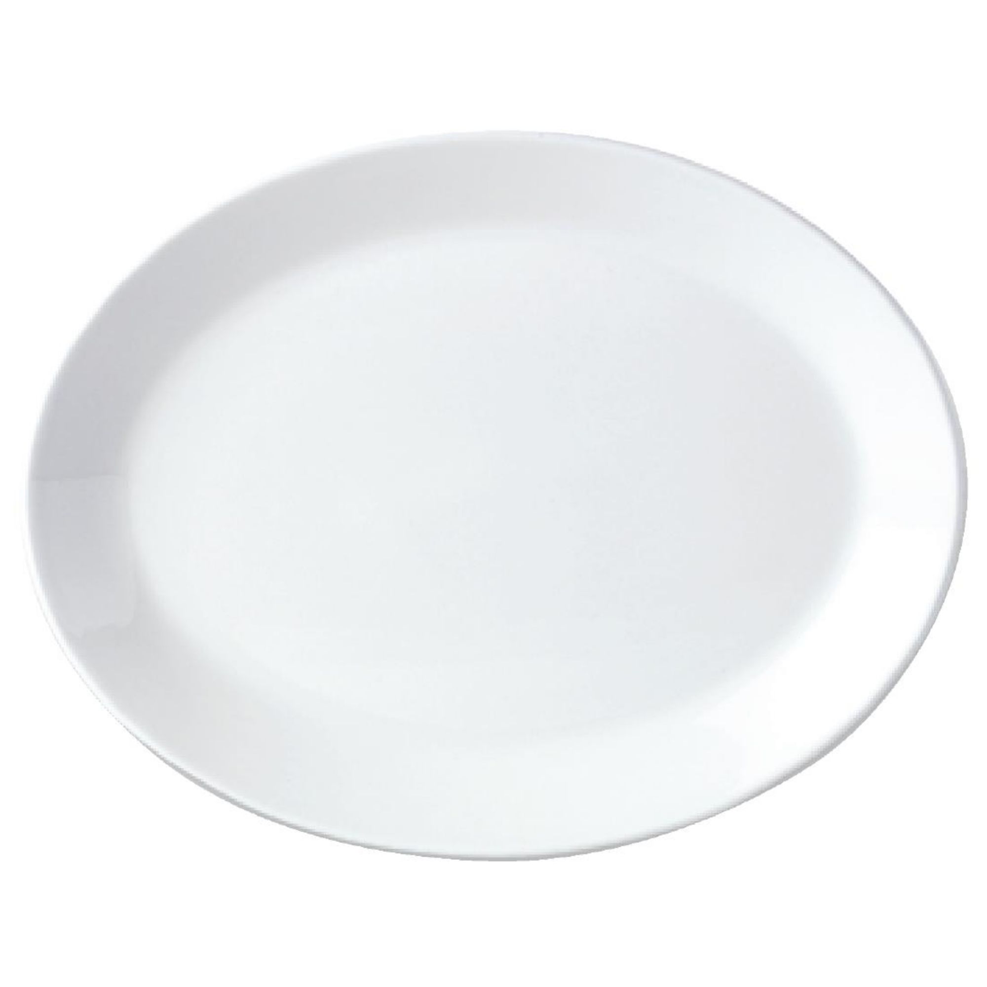 Combining excellent presentation with practicality, Simplicity White is ideal for any casual dining occasion from hotel breakfast, through cafe lunch to pub dinner. This 12" oval coupe dish complements all types of menu and food presentation by providing a versatile and simple backdrop. The dish is made from a strong and highly durable ceramic body, making it easily able to withstand the trials of daily use, is microwave, dishwasher and freezer proof, and has great heat retention for efficient service.