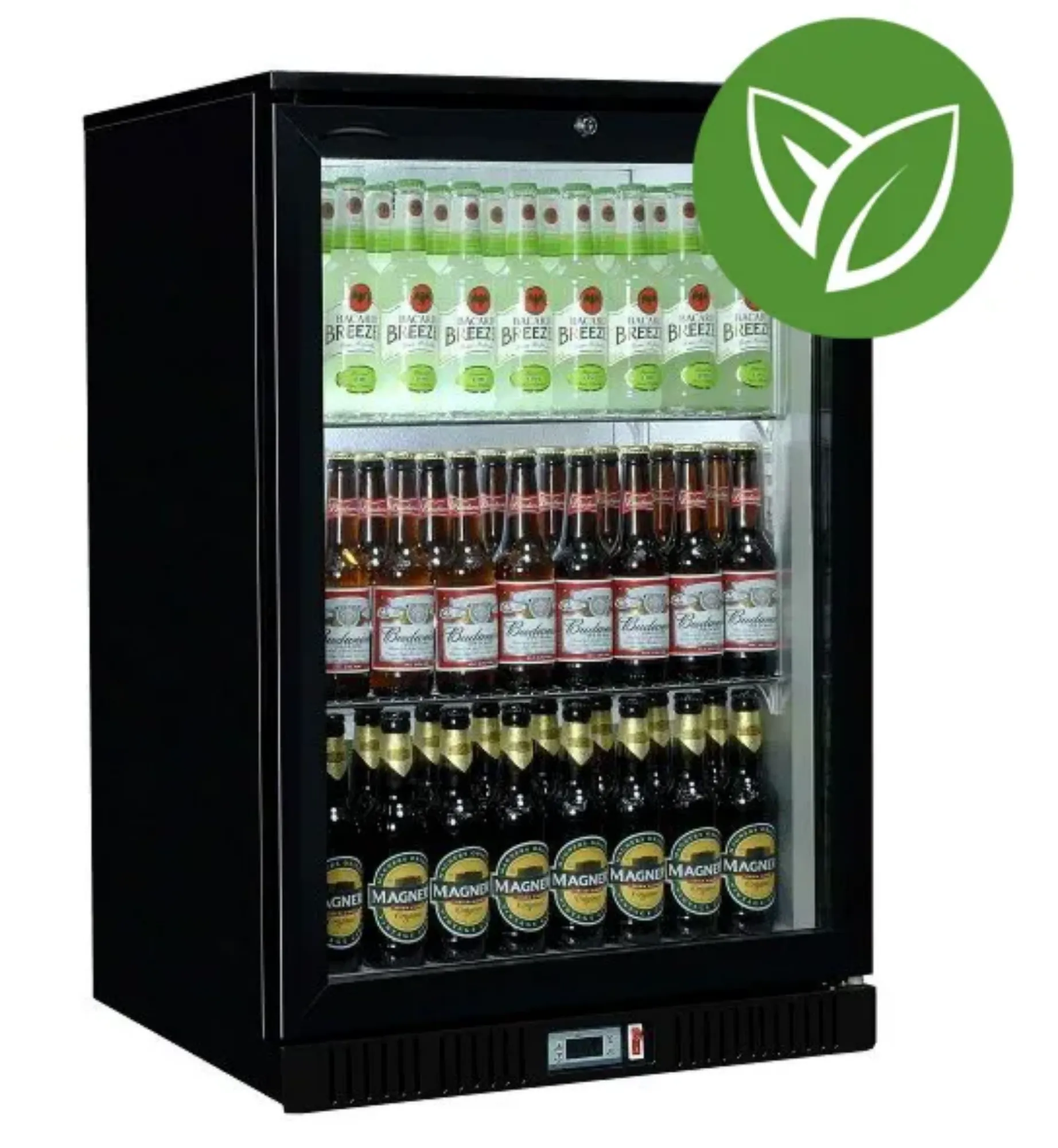The Sterling Pro black single door bottle cooler (SP1HC-BK) is one of our best-selling single door bottle coolers. It features a capacity of 106 x 330ml bottles, with adjustable shelves that allow for other size bottles or cans. The cooler includes hinged forward-opening lockable doors. It showcases your bottle products with efficient LED lighting while keeping costs low.