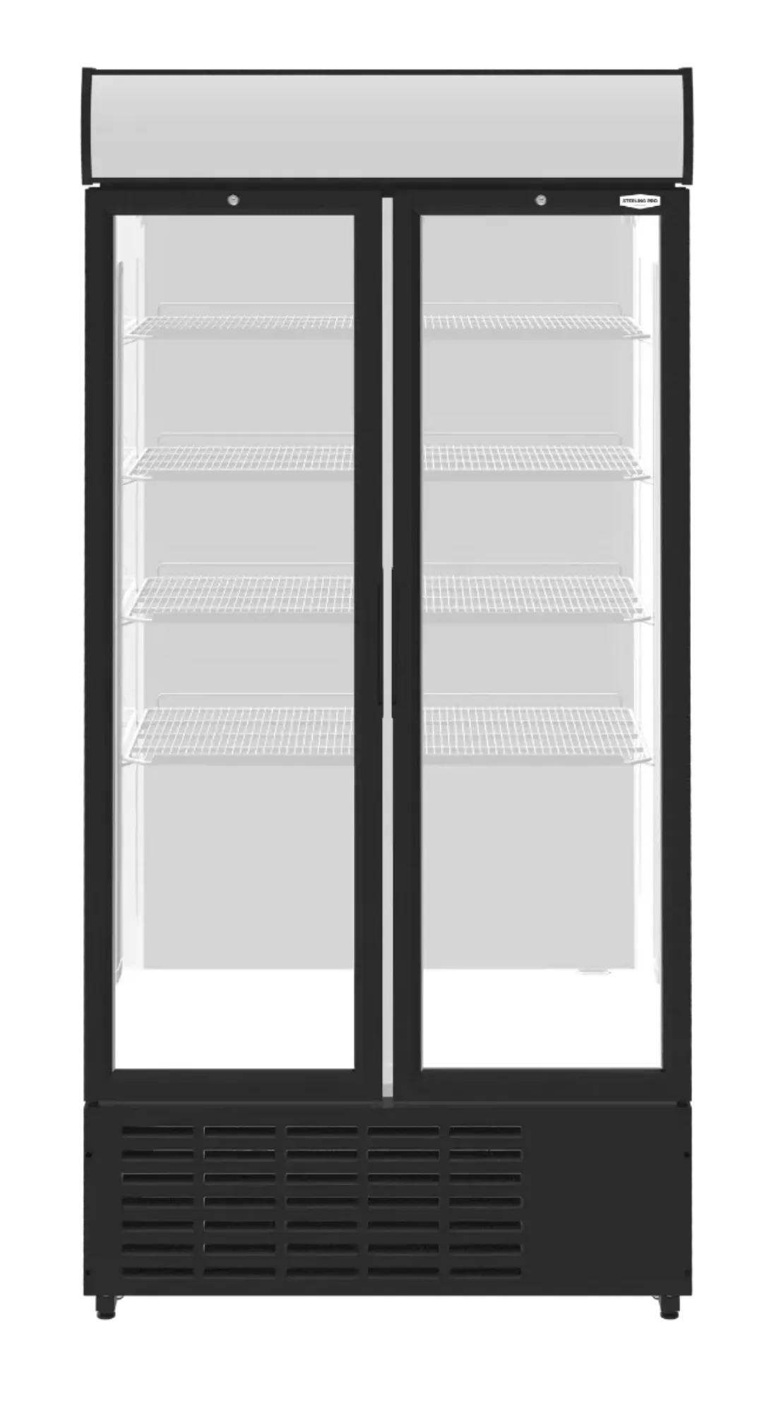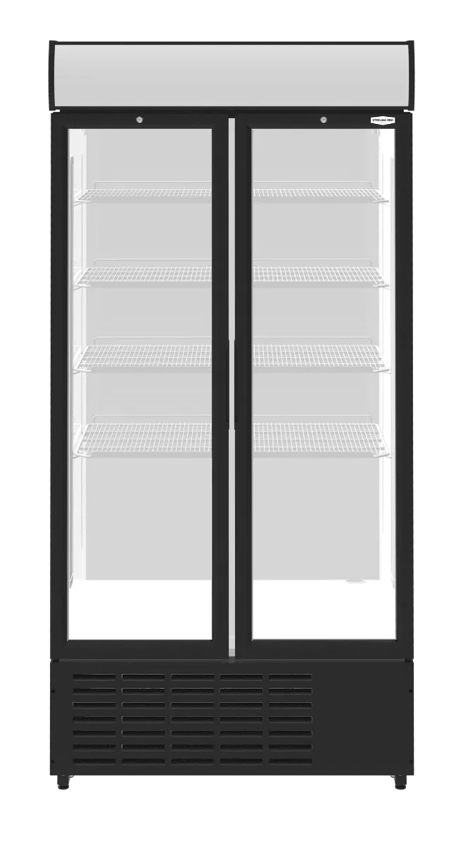 The Sterling Pro SPD20HG double door display chiller features LED lighting and a curved canopy display. It has a capacity to hold 1,001 cans of 330ml each.