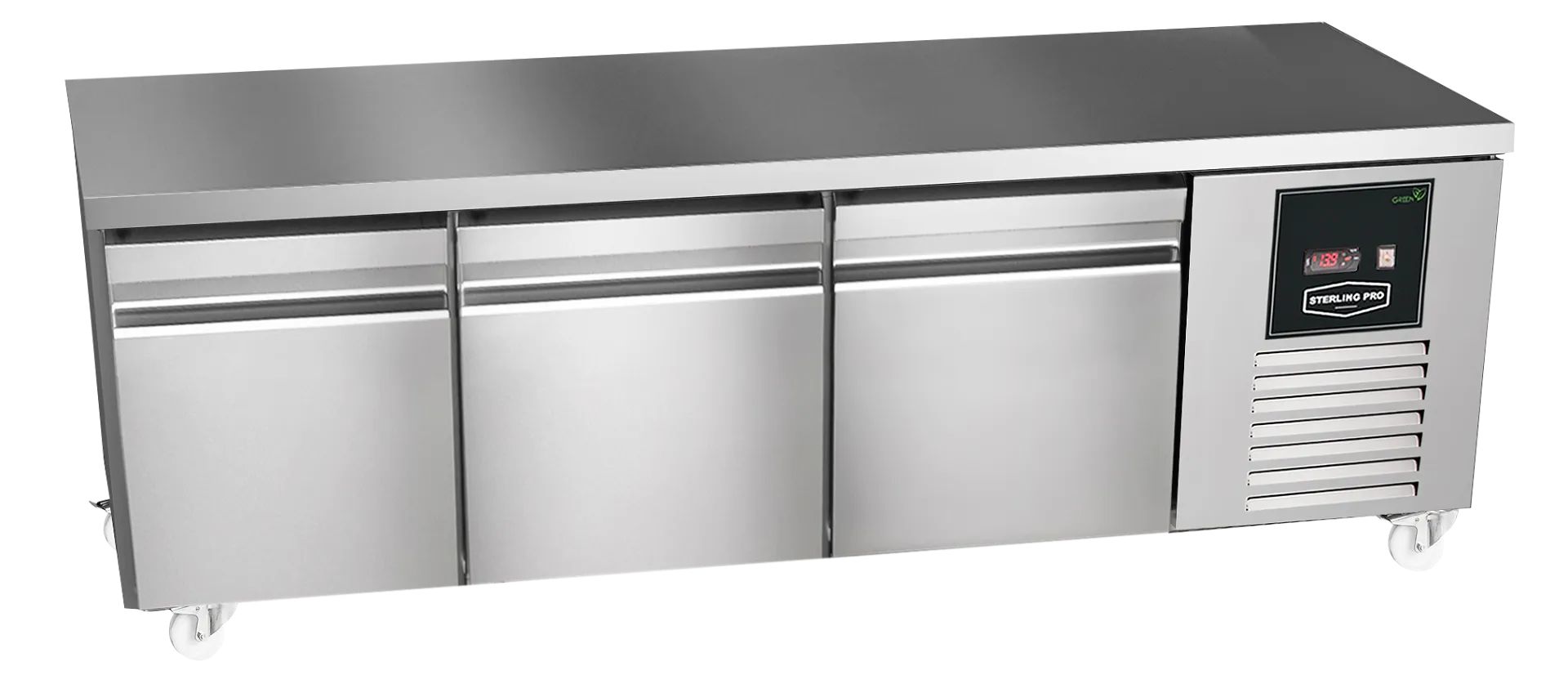 The Sterling Pro Green SPI-B-180 Stainless Steel Low-Height Counter is designed to safely support tabletop cooking appliances or food prep equipment on the worktop. With a height of just 584mm, you can place your blenders, fryers, food processors, or griddles safely on the worktop and find they're at a convenient ergonomic height. The refrigerated retractable drawers beneath offer a handy storage place for fresh ingredients and dairy items. Other drawer configurations are available on request.