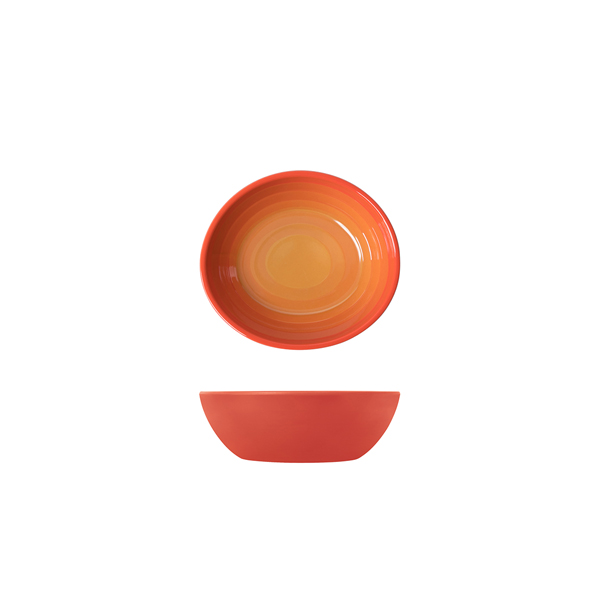 The Atlantis Bowl, an innovative piece of culinary excellence brought to you by Caterboss, is a radiant expression of functional design and artistry. This unique Sunset Orange Atlantis Melamine Oval Bowl stands out with its 15 x 13.5 x 5 cm dimensions, making it a perfect 'Hero piece' for any table or buffetware ensemble. Embedded with three vibrant colors, the bowl adds a dynamic visual element to any dining setting. Its visually striking ombre effect, transitioning from one hue to another, compels attention and enhances the appeal of any dish served in it.