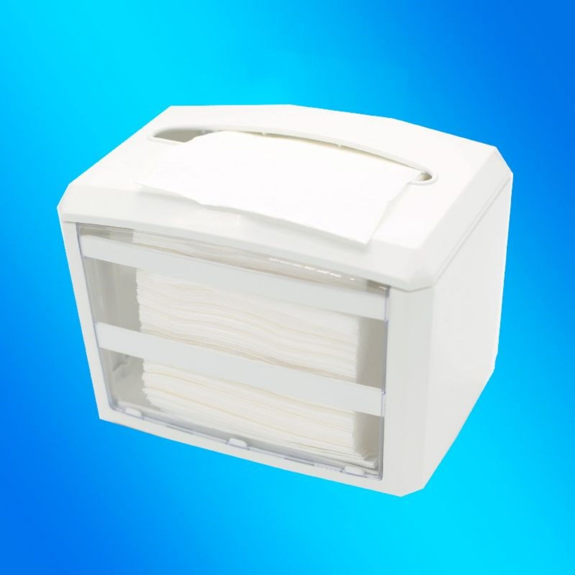 TABLE NAPKIN DISPENSER LARGE WHITE Material - ABS Dimensions - (H)148mm (W)194mm (D)140mm Weight - 0,465kg Capacity - Approximately 200 tissue napkins