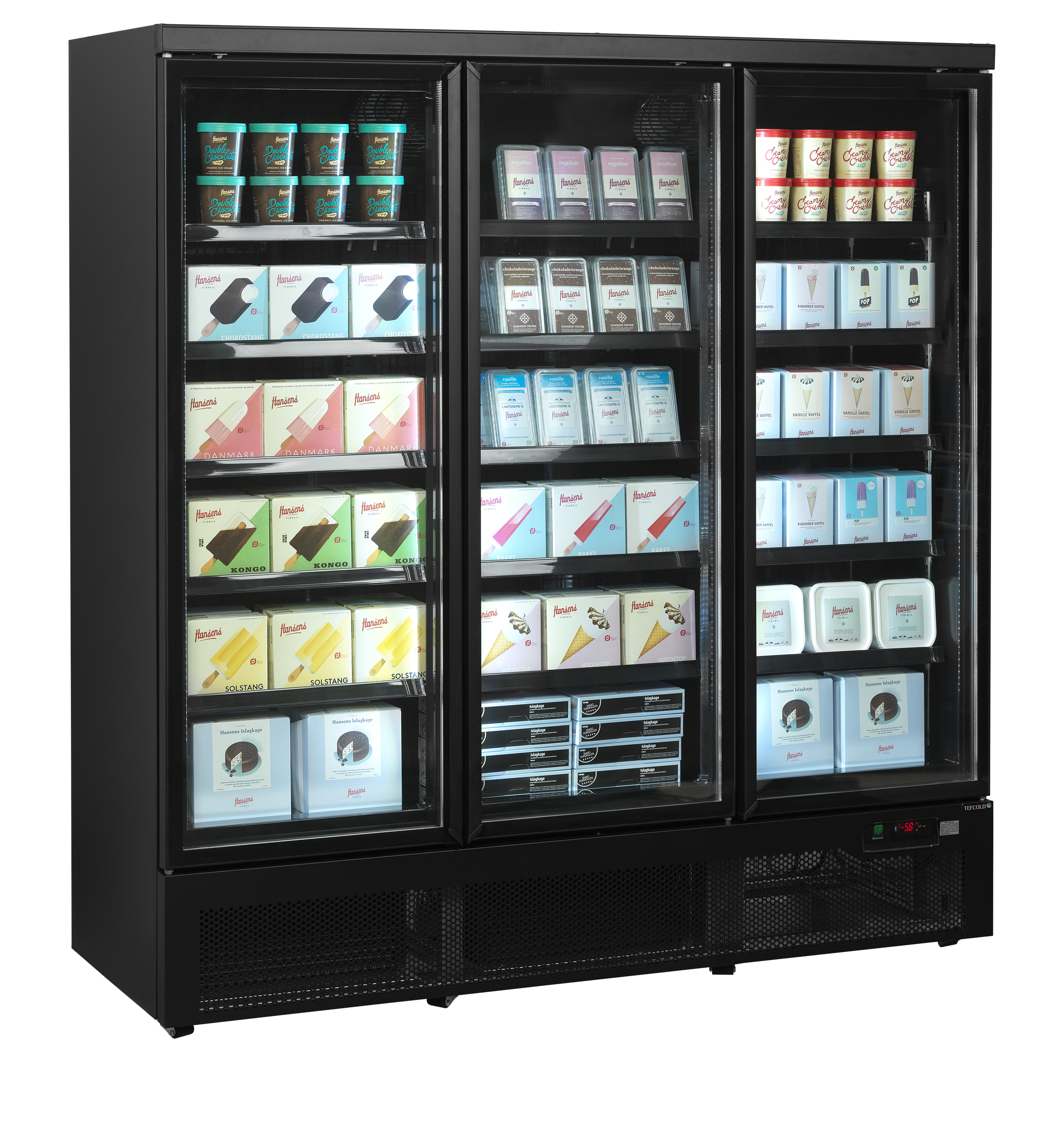 The Atom Maxi range of glass door freezers is available in one, two, or three door options. The edge-to-edge "frameless" self-closing glass doors, combined with excellent storage capacity, make it ideal for all types of frozen food display. The canopy-less design makes it a favorite choice for shopfitters who use it in convenience stores, delis, and butchers, where a frozen selection gives customers extra choice.
