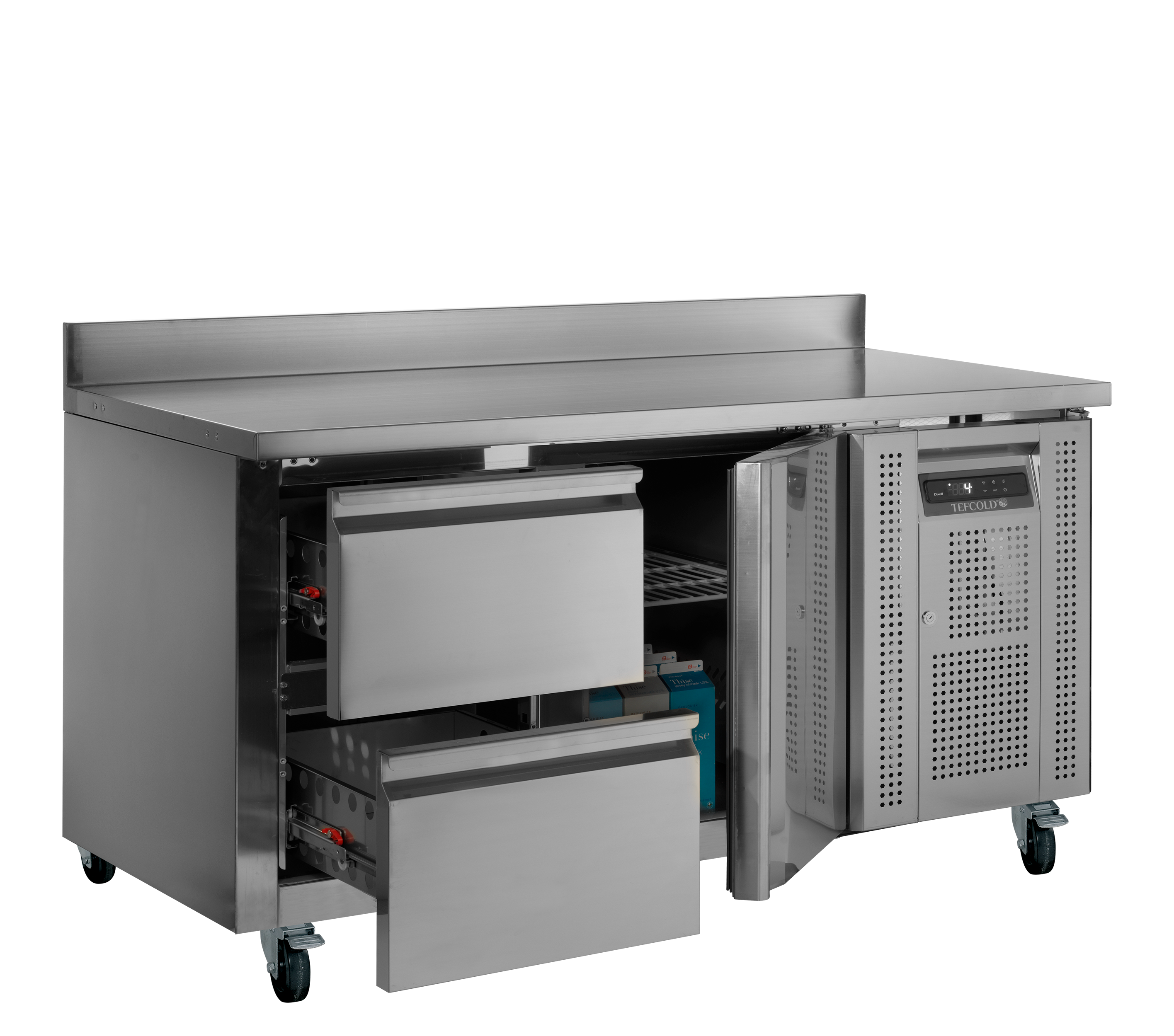 The CK range of counters is designed for professional kitchens, offering a durable stainless steel construction. Its ventilated system maintains consistent temperatures, and an electronic controller makes adjustments easy. The CK range is available in numerous configurations with solid doors, glass doors, or drawers, and with or without a splashback.