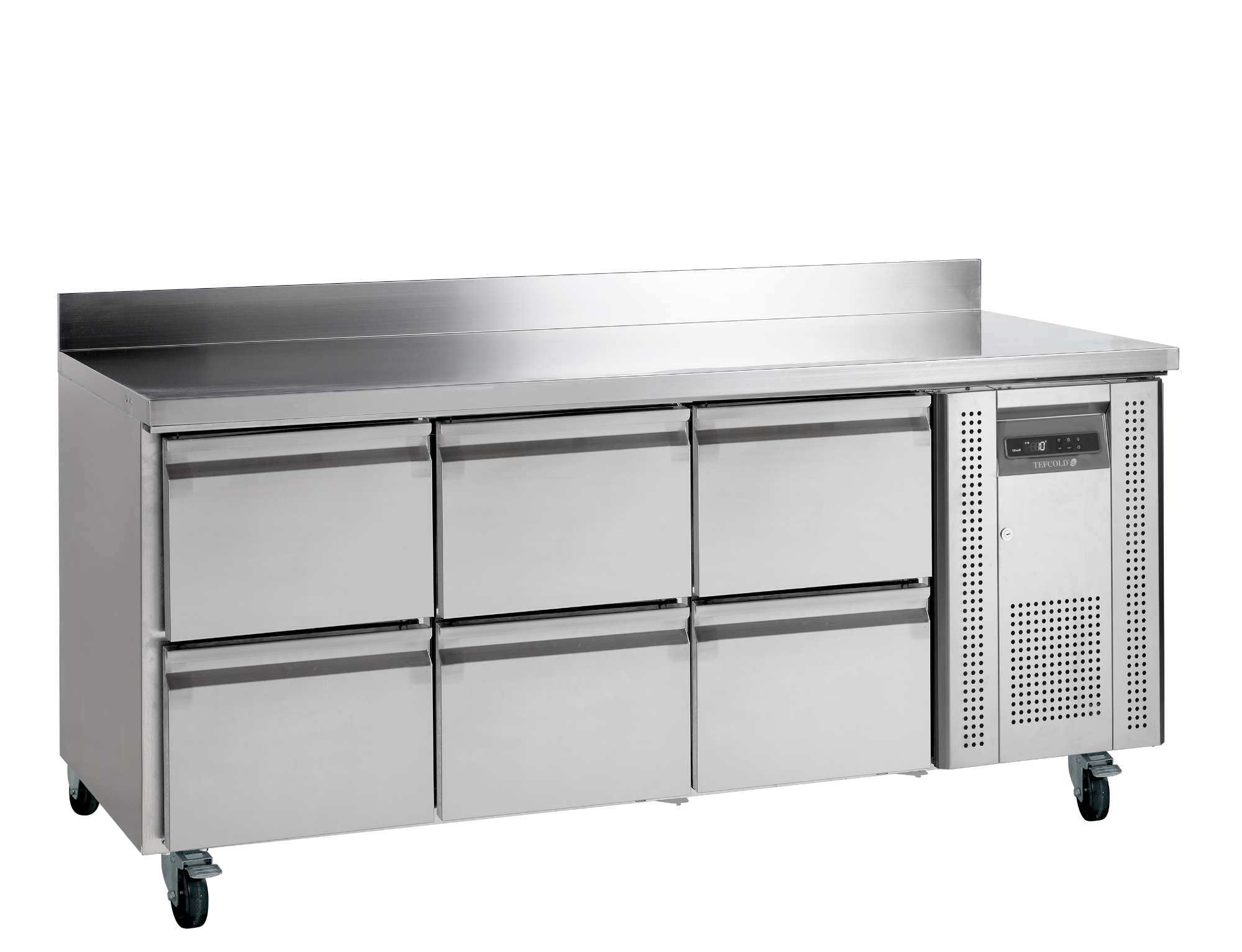 The CK range of counters is designed for professional kitchens, featuring a durable stainless steel construction. Its ventilated system ensures consistent temperatures, while an electronic controller allows for easy adjustments. The CK range is available in various configurations, including options with solid doors, glass doors, or drawers, and can be selected with or without a splashback.