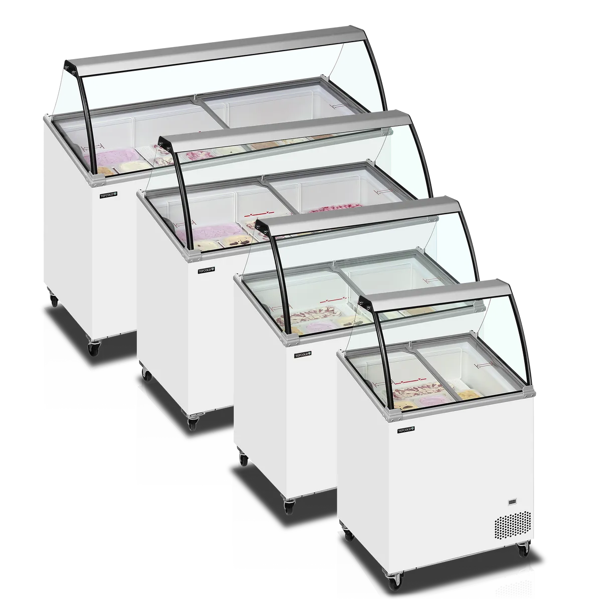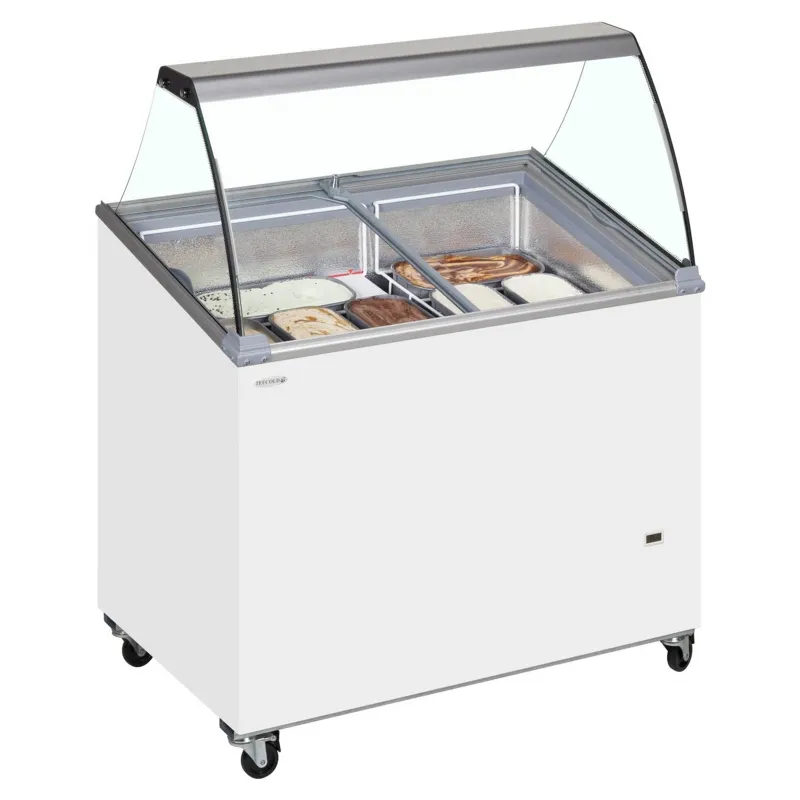 The Tefcold IC-SCE with canopy range is an ideal solution for adding scooping ice cream sales to your business, even if you are on a budget. This is one of our most popular ranges. It features a curved glass canopy with an attractive sloping display for scooping tubs, ensuring your customers have a clear view of the ice cream in the unit. The unit accommodates 5-liter Napoli tubs, with the option for 4-liter baskets if required.