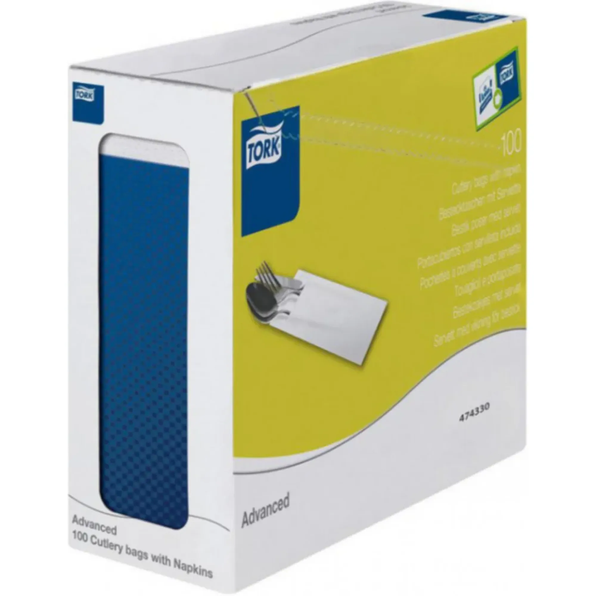 Tork Dark Blue High Quality Cutlery Bag: Streamline your table-setting process with our Tork High Quality Cutlery Bags. Busy restaurants need to set tables quickly and our pre-filled cutlery bags are an efficient choice as they save staff time when service has started. They're also a hygienic option as cutlery is sealed inside the bags. Once filled, they're easy to store vertically in the Tork display box or a basket. When a table needs to be set, the cutlery bags with pre-inserted 2-ply napkins are on hand for quick turnaround.