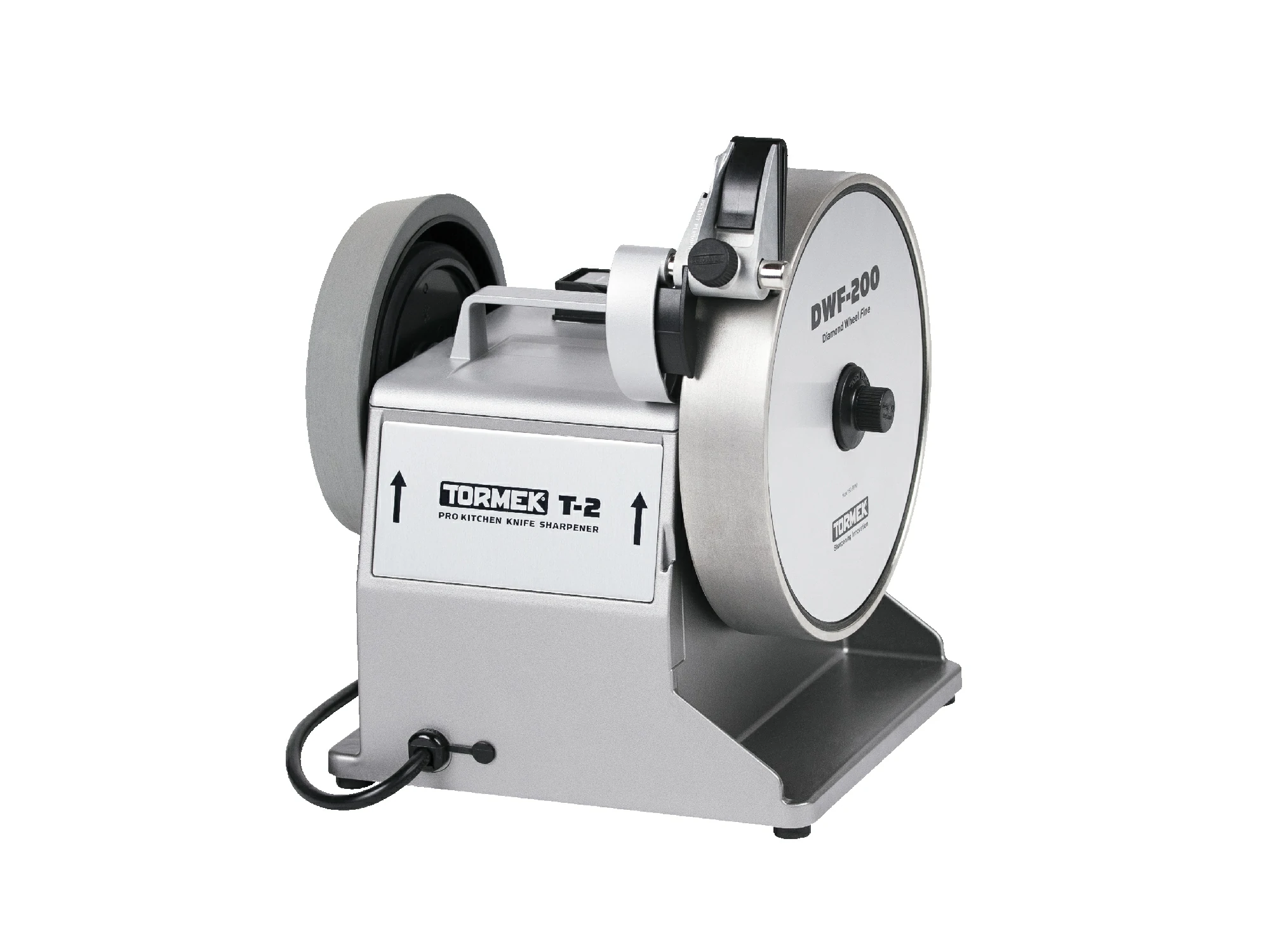 Resilient clamp steers the knife on both sides, which makes it easy to maintain a constant angle against the grinding wheel