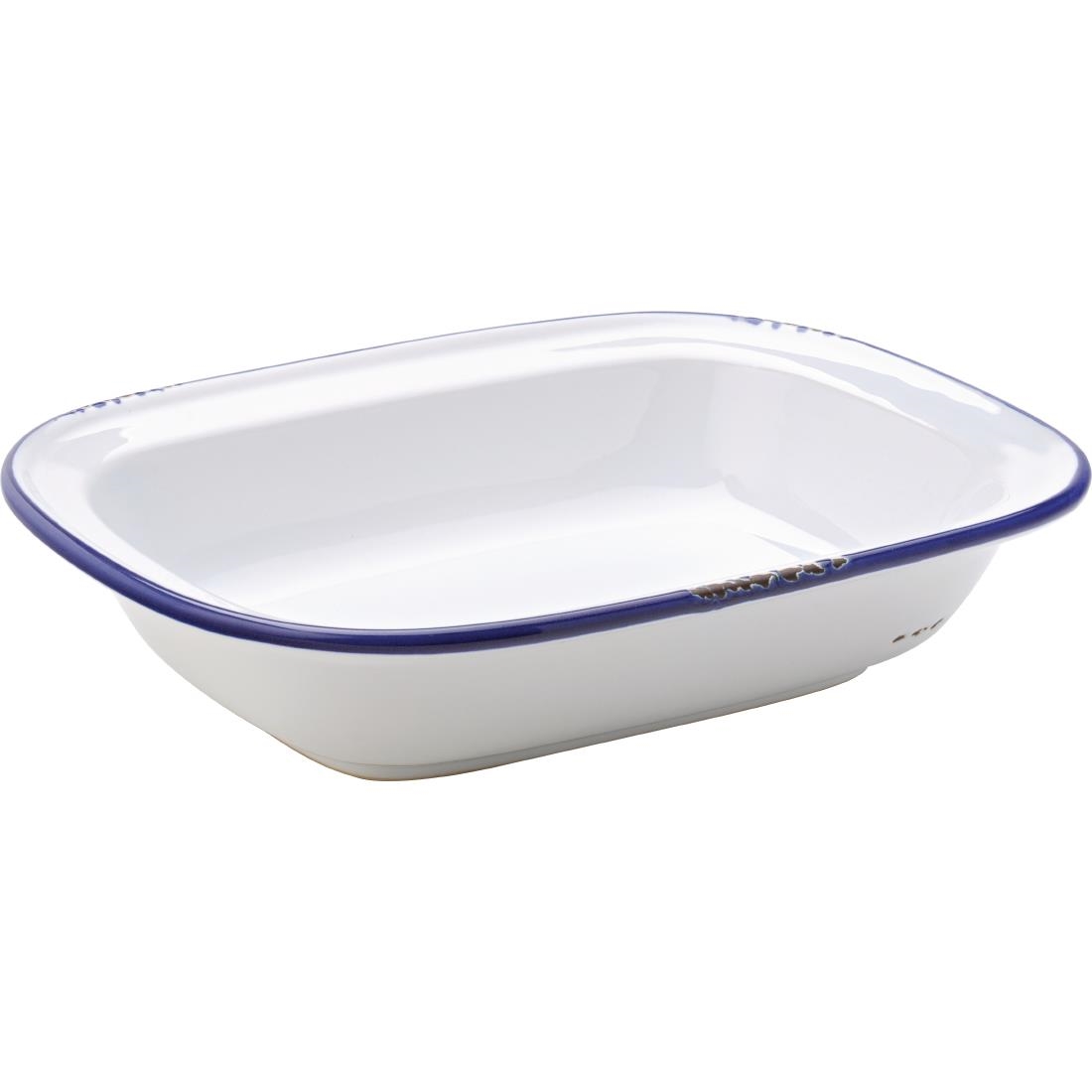 The Avebury Blue collection of decorated stoneware is instantly recognisable with the classic blue rimmed enamel tableware. Take this retro look to your table to add authenticity and a rustic feel to your food.