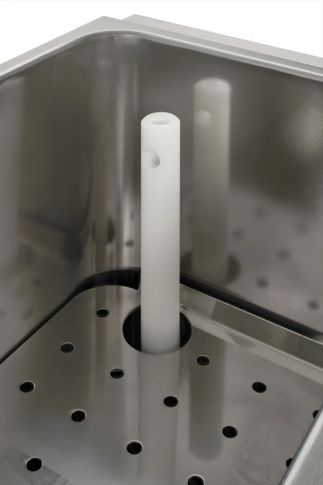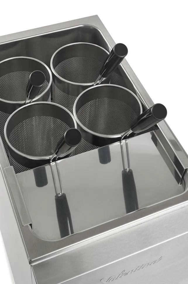 The Multi Cooker is an essential tool for caterers looking to expand their menu options. Its design accommodates a combination of standard gastronorm containers and baskets, allowing flexibility based on the menu offerings. This compact unit is constructed from stainless steel and features a one-piece pressed pan that is fully insulated. A rear tap unit, connected to the water supply, facilitates easy filling and aids in the removal of starch when cooking pasta. Additionally, the unit can be connected to the waste water system via the back.