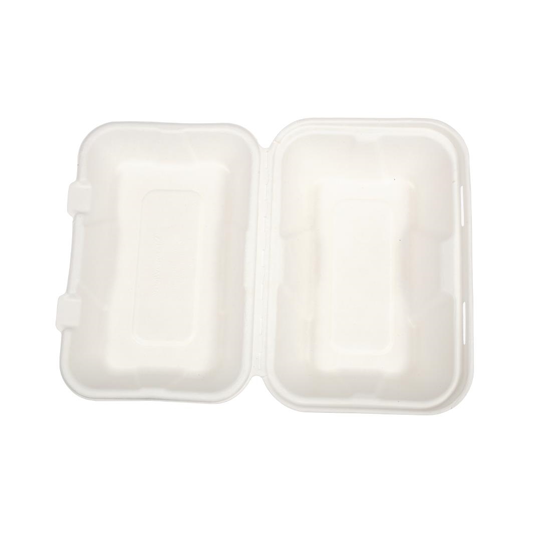 Say goodbye to soggy takeaway food with these 225(W) x 150(D)mm Vegware compostable bagasse clamshell hinged meal boxes. Made from recycled sugarcane, these bagasse takeaway boxes are highly sustainable and will fully compost within 12 weeks when sent to commercial composting facilities. As such, these meal boxes will help you to reduce your business's environmental impact, send less waste to harmful landfill sites, and show customers you really care about important global issues.