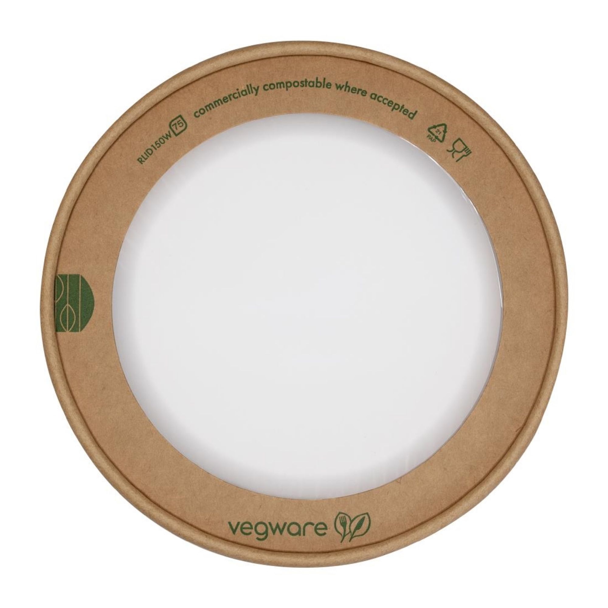 Ideal for keeping dishes warm and covered, this round lid with cellophane window from Vegware is designed to fit Vegware 150-Series food containers - 16oz (JE050) or 24oz (JE051). Made from kraft paperboard with a transparent cellophane window in the centre and PLA lining, it features a neutral brown tone that blends effortlessly into street-food and casual dining displays.