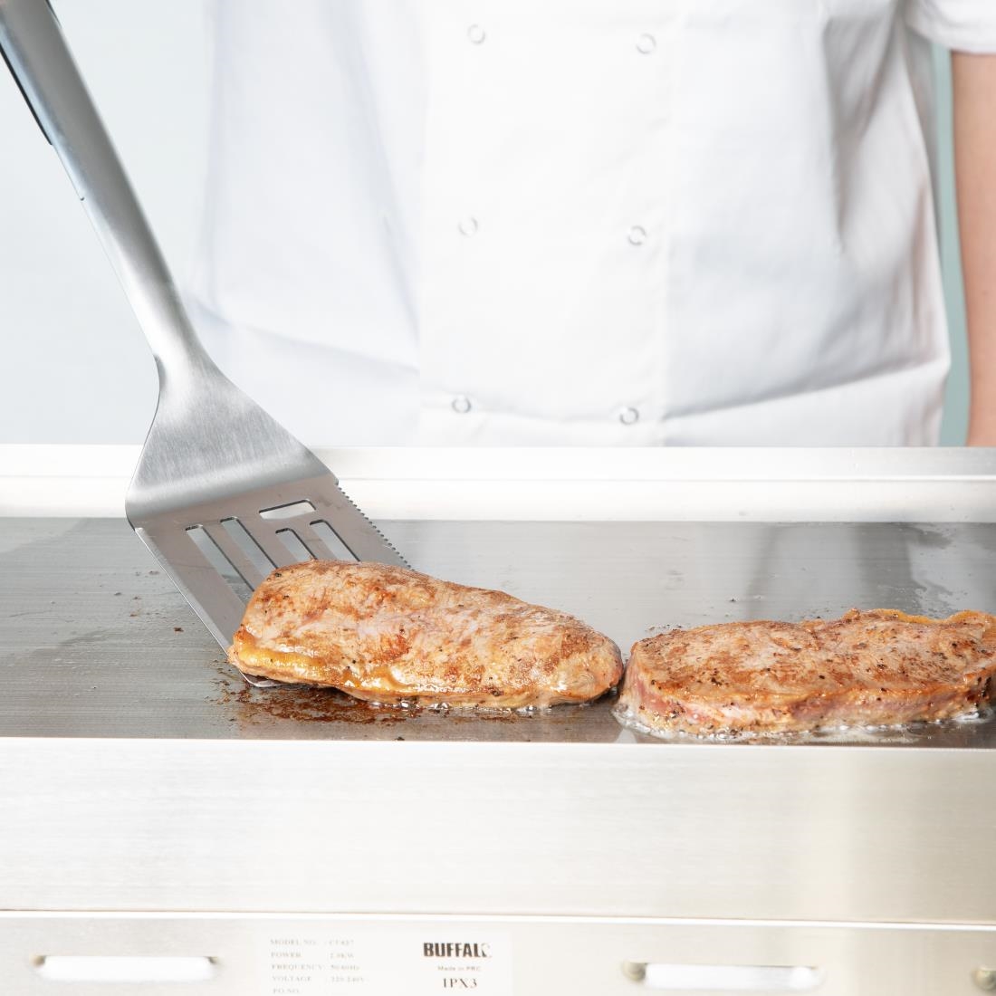 The spatula is designed to be heat resistant and highly durable, making it suitable for everyday use, as well as safe for cleaning in the dishwasher. A superb spatula for professional use.