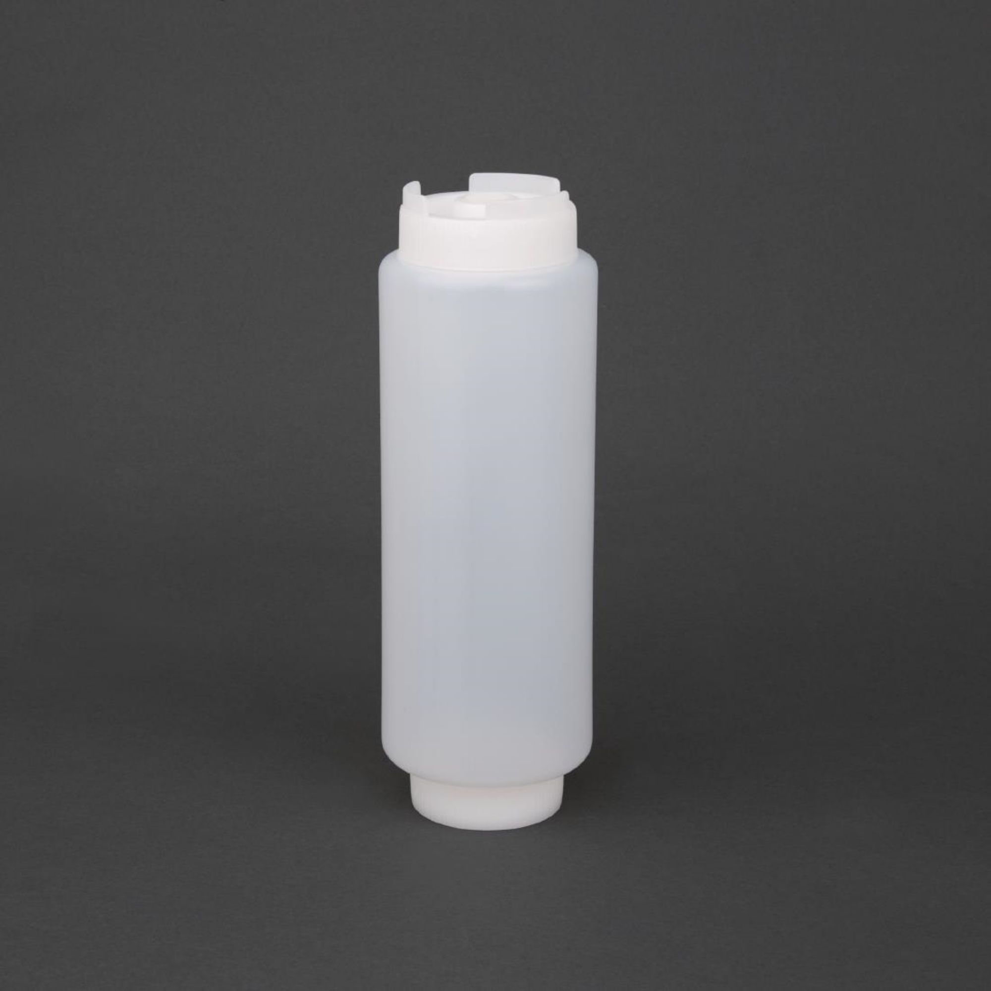 The 20oz Vogue sauce rotation squeezy bottle is the perfect professional solution for decorating plates or adding sauces to dishes. With its innovative design, you fill the bottle from the top and dispense through the bottom. This way, you'll maintain proper food rotation. Compared to traditional bottles, there's no need to flip the bottle to dispense, resulting in less mess and waste.