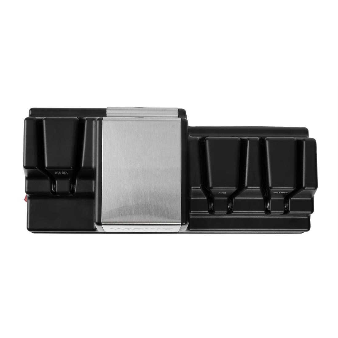 One stropping wheel operates in reverse for efficient removal of burrs and better polishing of blades