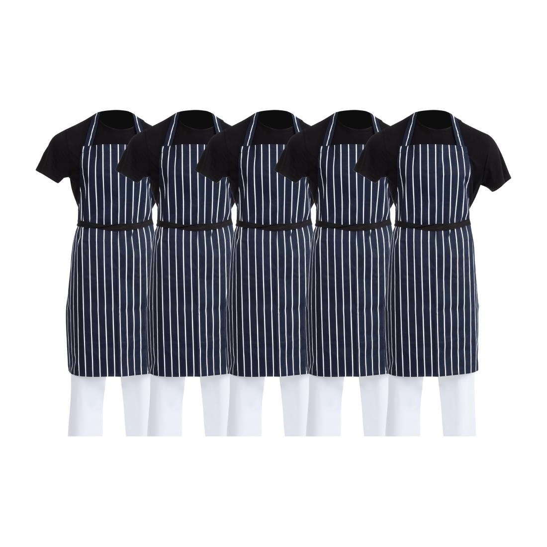 Ensure your clothes stay safeguarded from splashes and spills at all times with this high-quality Whites blue stripe unisex butcher's apron. Boasting an outstanding 965mm length, the apron offers tremendous protection when cooking and preparing ingredients, helping to keep your chef's whites hygienic and in impeccable condition all day long. Made from high-quality polycotton, the apron is incredibly hardwearing and easy to clean, ensuring a long-lasting life in any busy commercial catering environment. Completed with long ties, the striped apron can be effortlessly adjusted to fit your staff, helping them attain a more comfortable and secure fit.