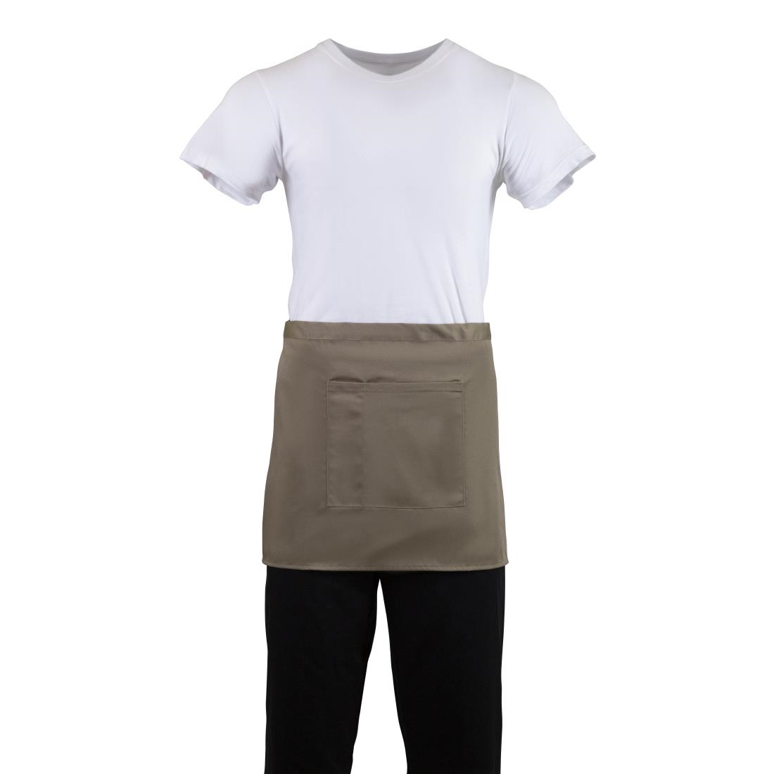 In a striking tan color, this bistro apron from Whites is designed with a shortened length to reduce the chance of excess fabric being caught up and causing a trip or fall. The apron features a user-friendly patch pocket on the front for easy access to all the essential tools needed during a busy shift. This design saves time and hassle when searching for items, allowing for more customer focus and a smoother experience.