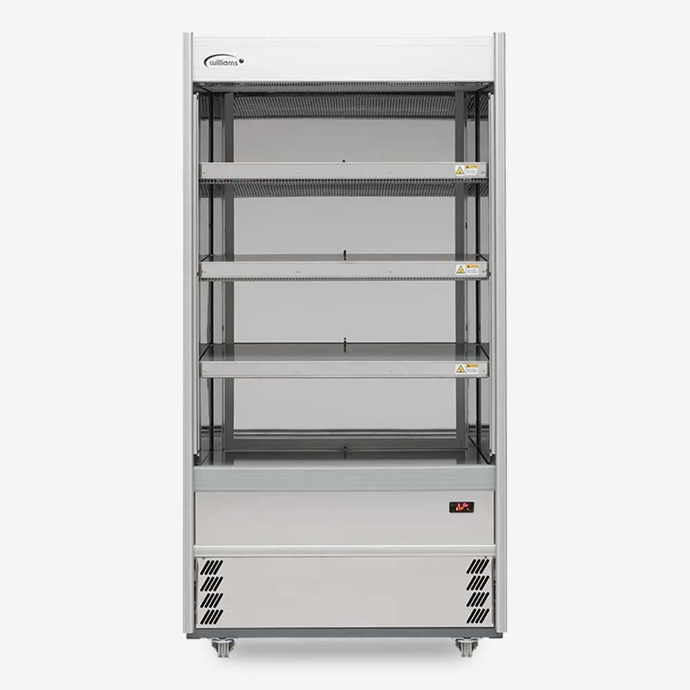 Food is displayed on the three tilted shelves and the interior base, each of which has its own individually controlled temperature setting. This allows for customization to match the requirements of different food types. Like all Williams Multidecks, the Scarlet is designed to deliver an attractive display that will help maximize your grab-and-go merchandising sales. The bright interior features polished foodsafe stainless steel shelves and full-length LED lighting. The optional panoramic glass ends offer increased visibility, allowing customers to view the display from more angles.