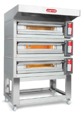 Heavy-duty stands and prover cabinets are available to mount these ovens on, both with wheels. A decorative hood with a draft chimney is also available. A three-deck oven can be assembled using one twin deck and one single modular deck oven.